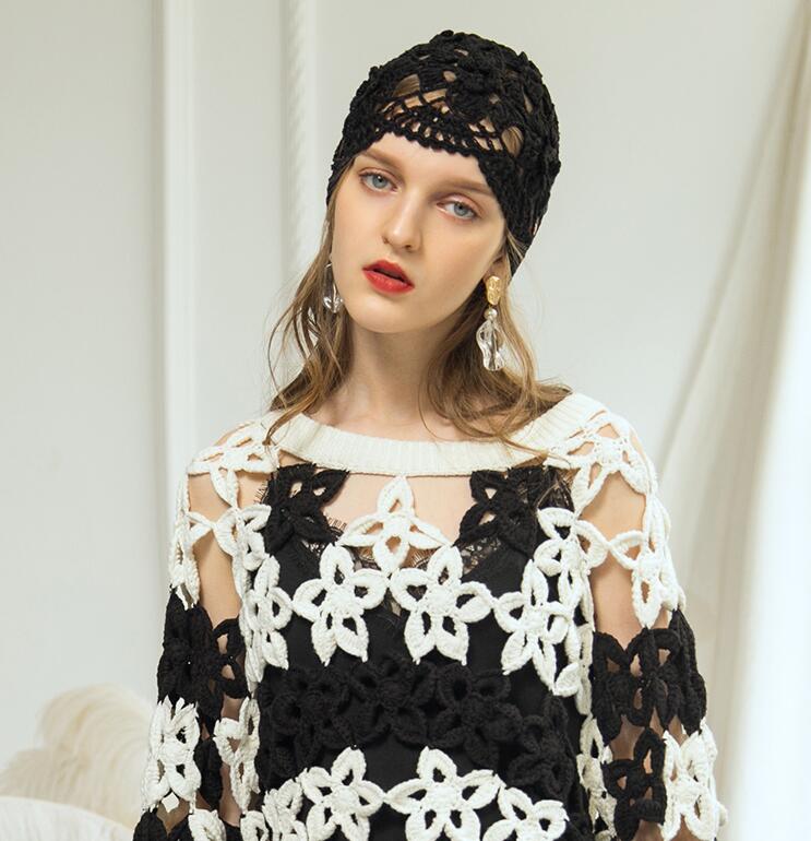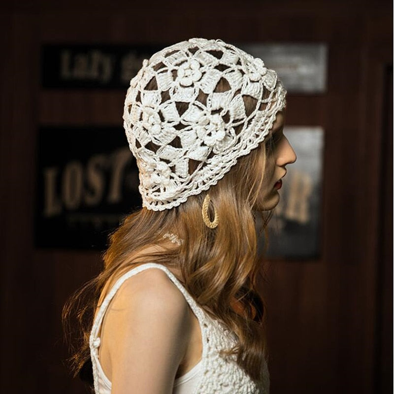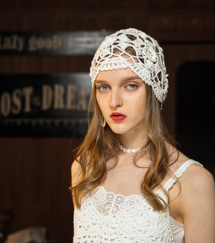 Women Flowers Lace Beanie Cap Female Spring Summer Korean Sweet Lovely Skullies Hat Girl Leisure All-match Beanies Hats H6768