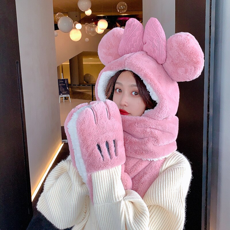 Women Stitching Color Cute Scarf 100% Wool Cold and Warm Hat Autumn and Winter Love Scarf Winter Skiing All-in-one Hood