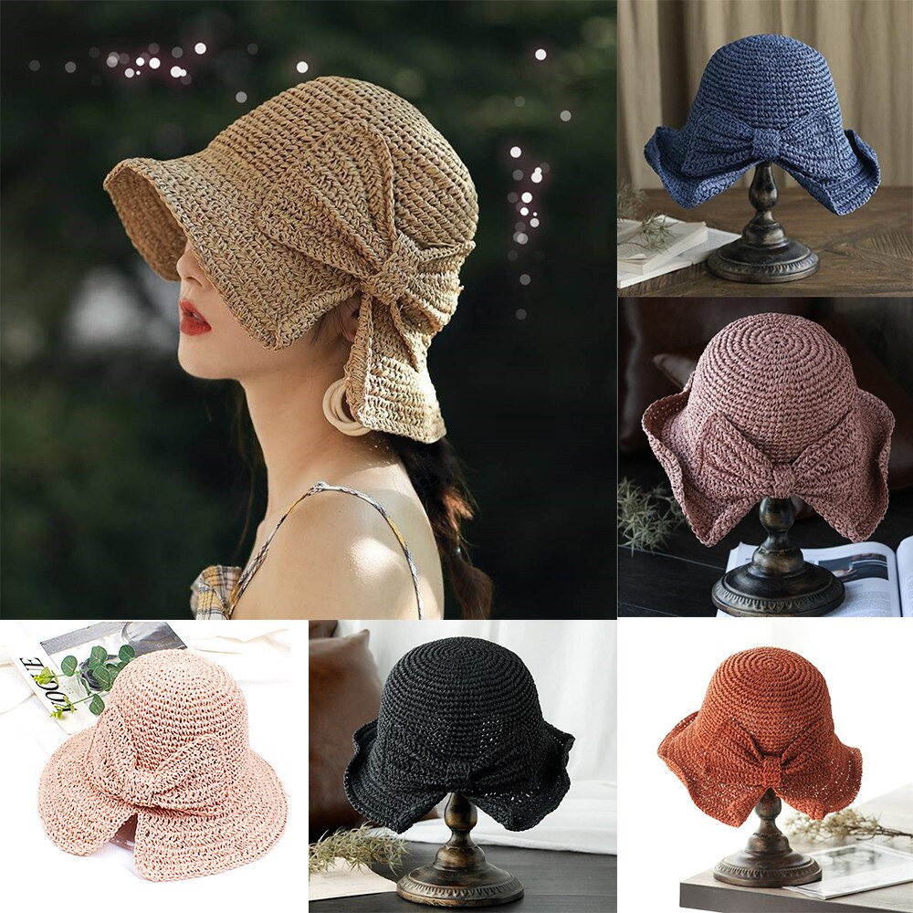 Daiiibabyyy Womens Straw Hat Sun Hat for Women Beach Cap Summer Hats UV Protection, Ladies Foldable Fashion Bow Hats Brimmed