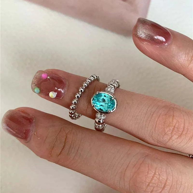 DAIIIBABYYY - New Trending Heart Zircon Double-Layer Ear Cuff No Piercing Earring Unique Metal Blue Crystal Rings for Women Y2K Jewelry Sets
