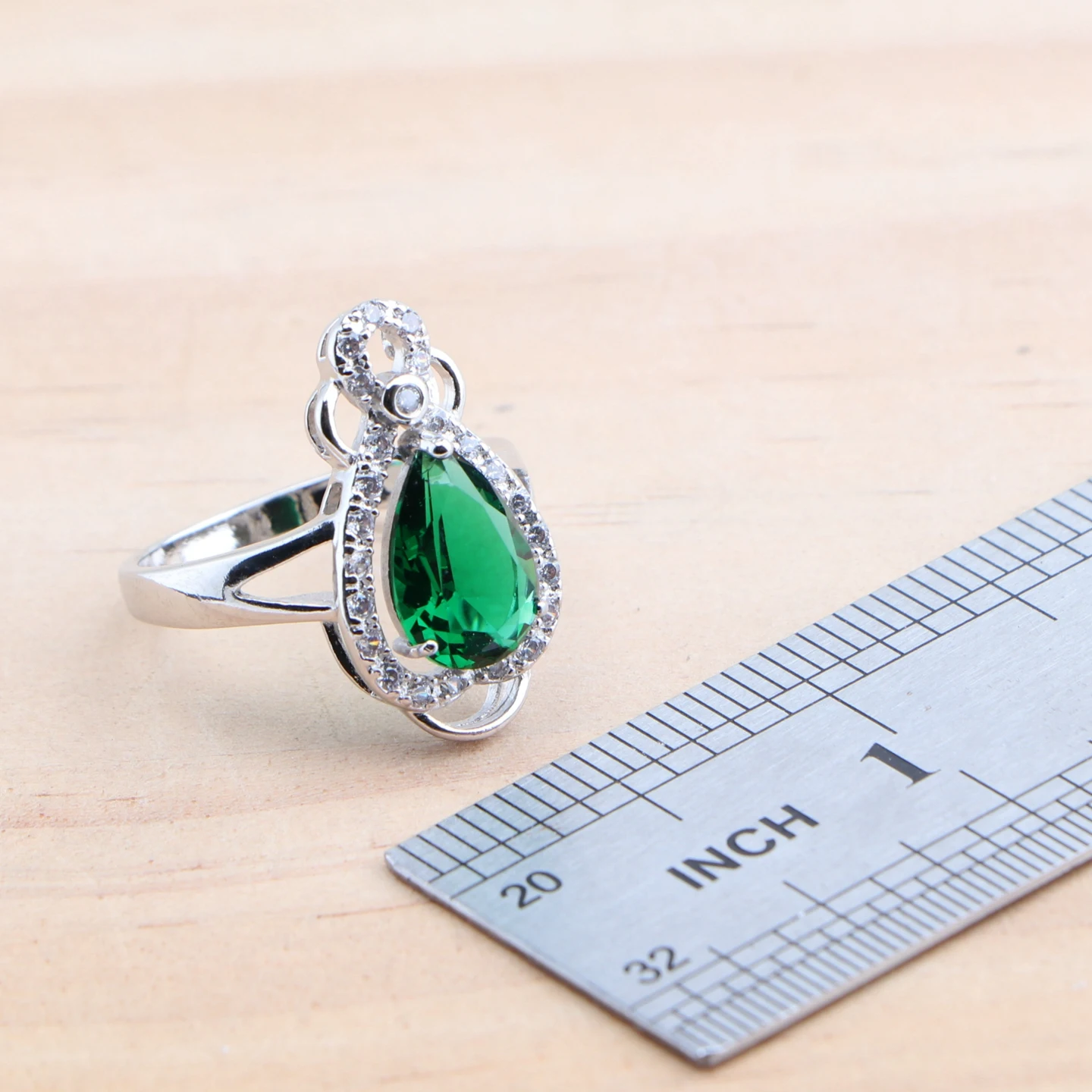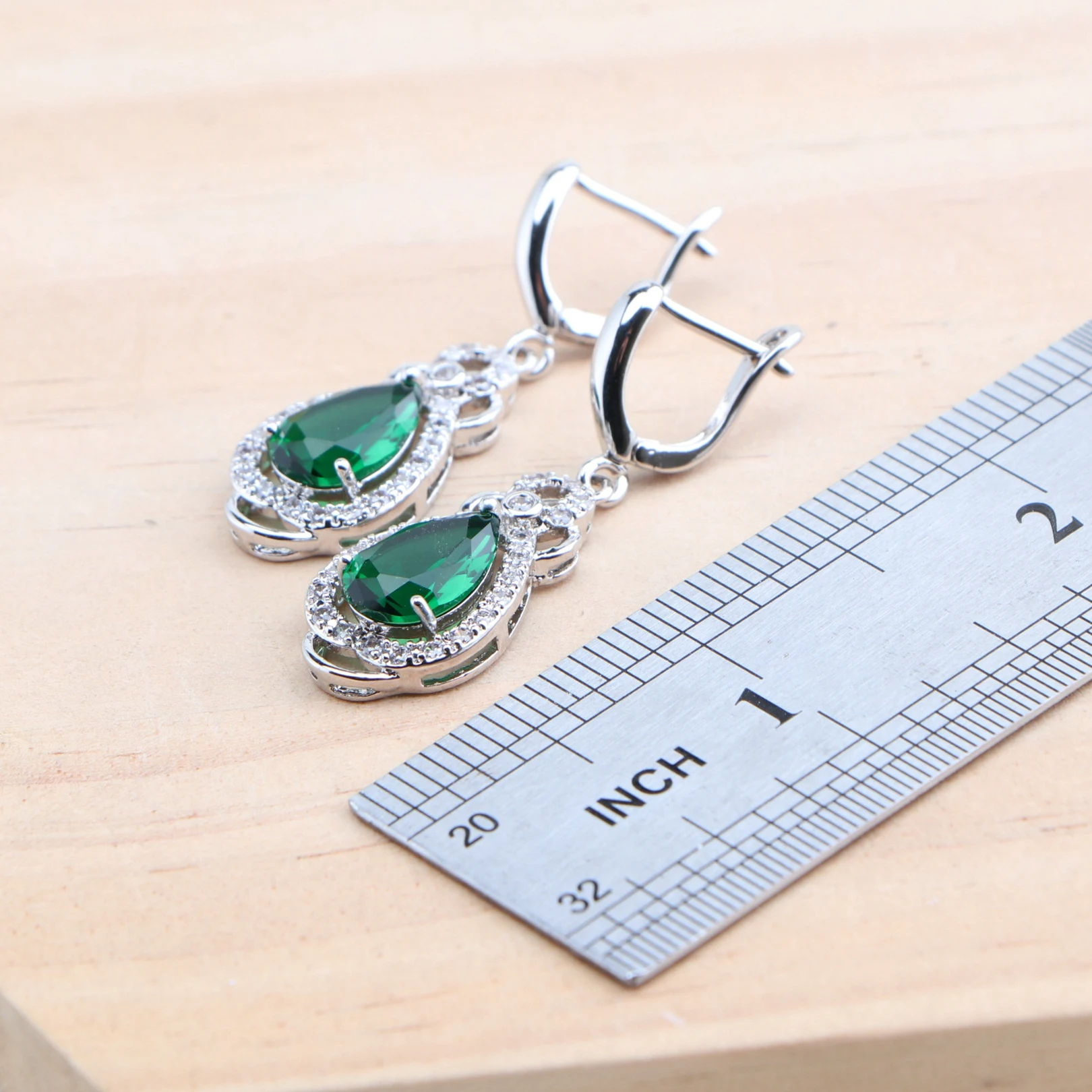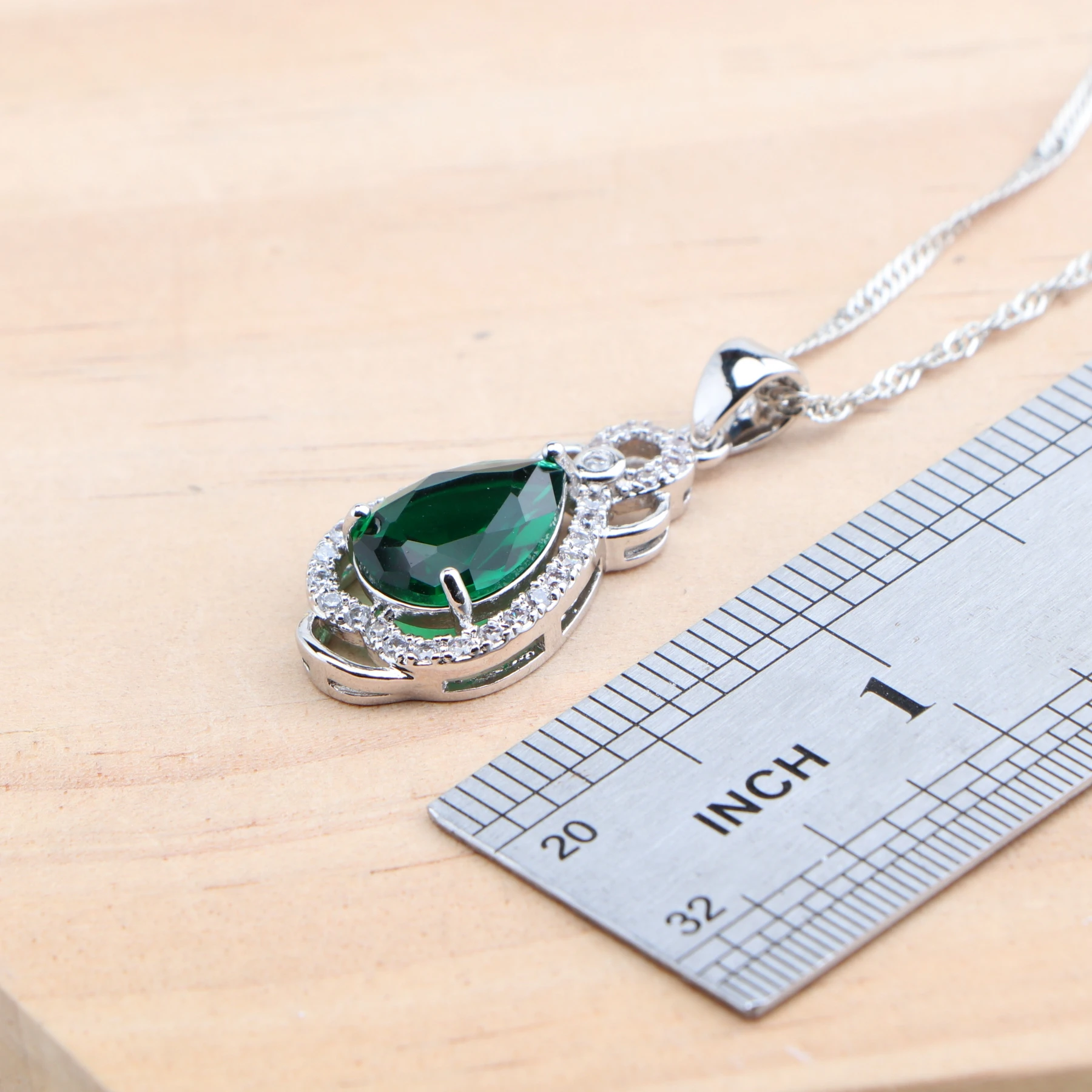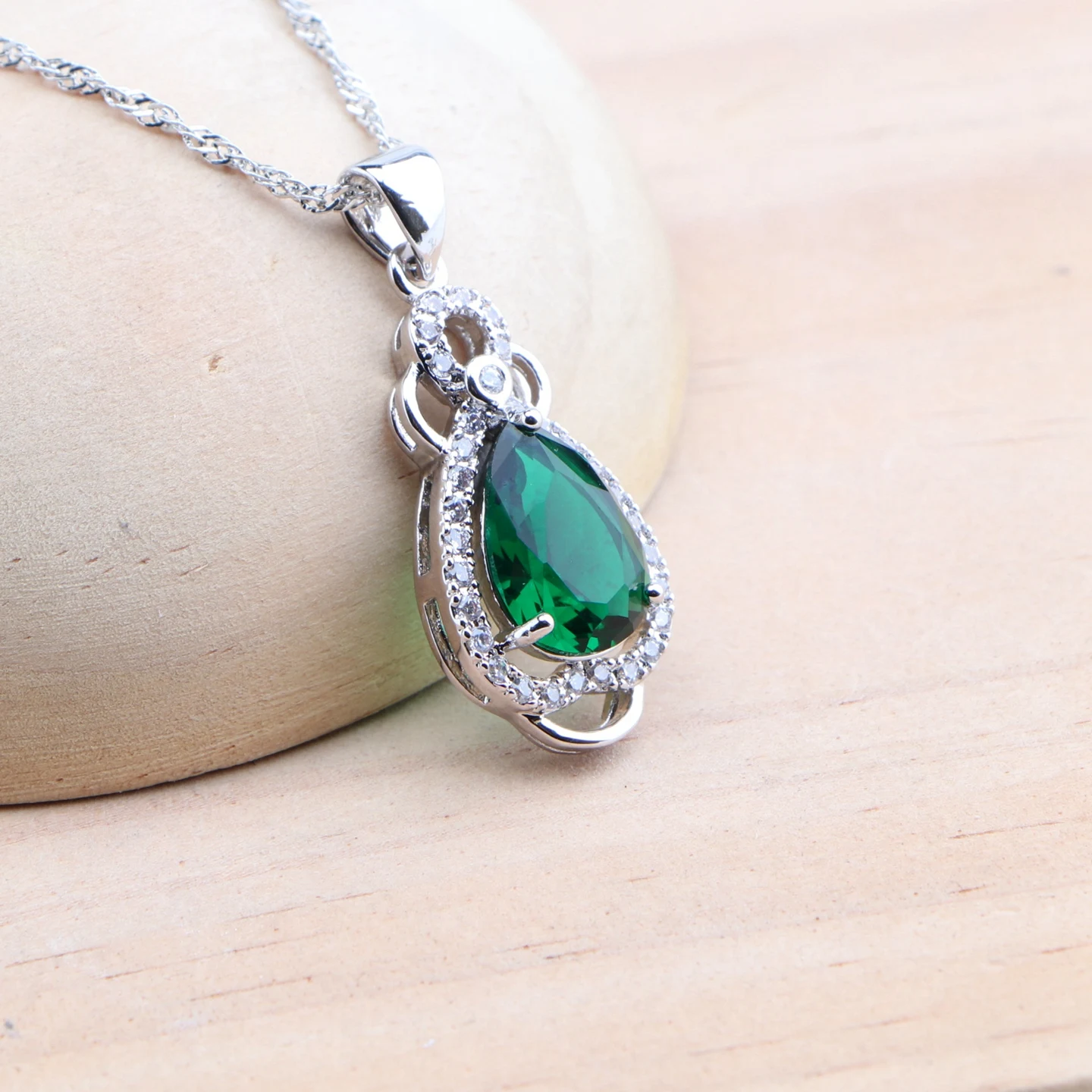 Daiiibabyyy Silver 925 Green Zircon Jewelry Sets For Women Bridal Earrings Rings Pendant Wedding Necklace Set