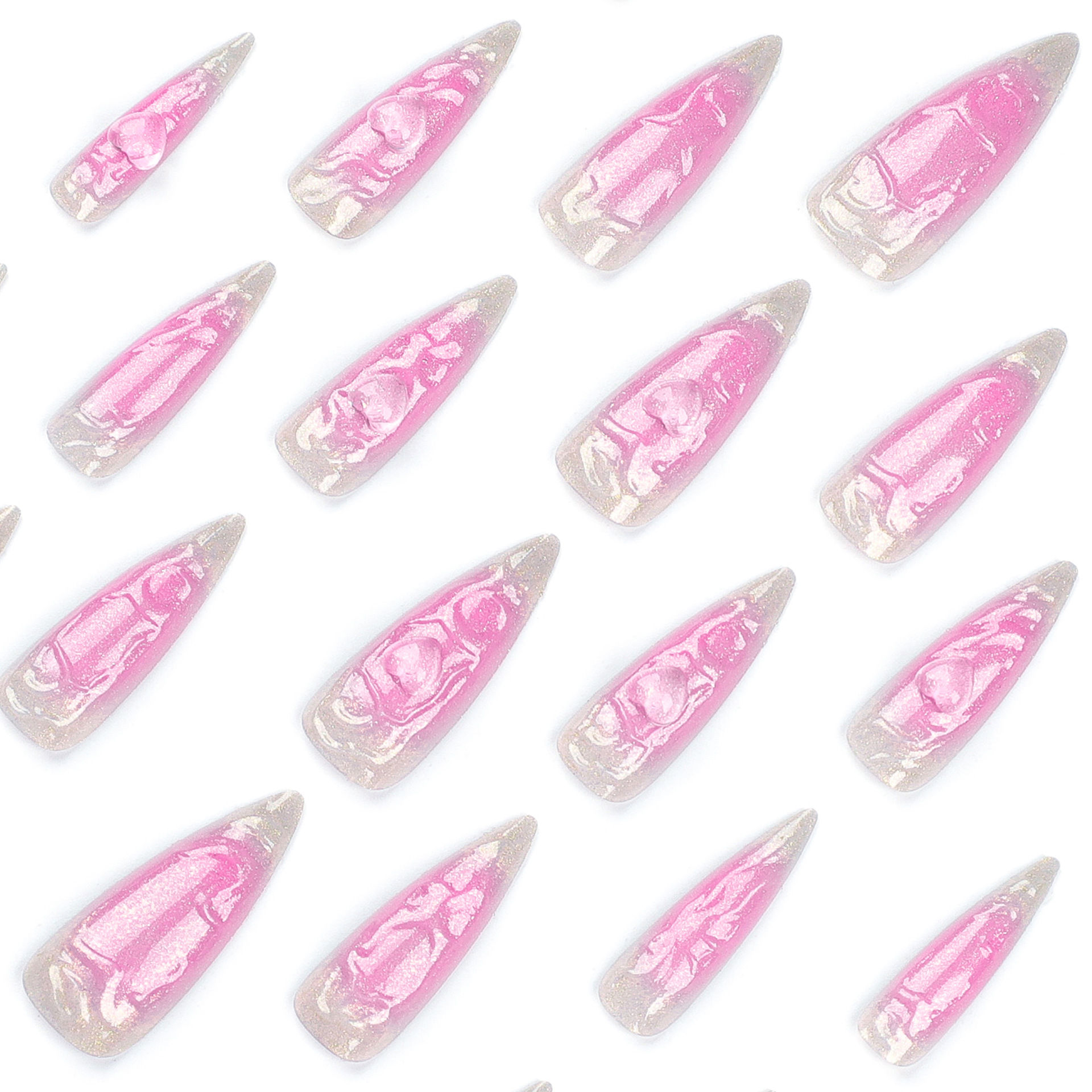 Daiiibabyyy 24Pcs 3D Almond False Nails Glitter Ballet Fake Nails Heart Gradient with French Design Wearable Press on Nails Color Nail Tips