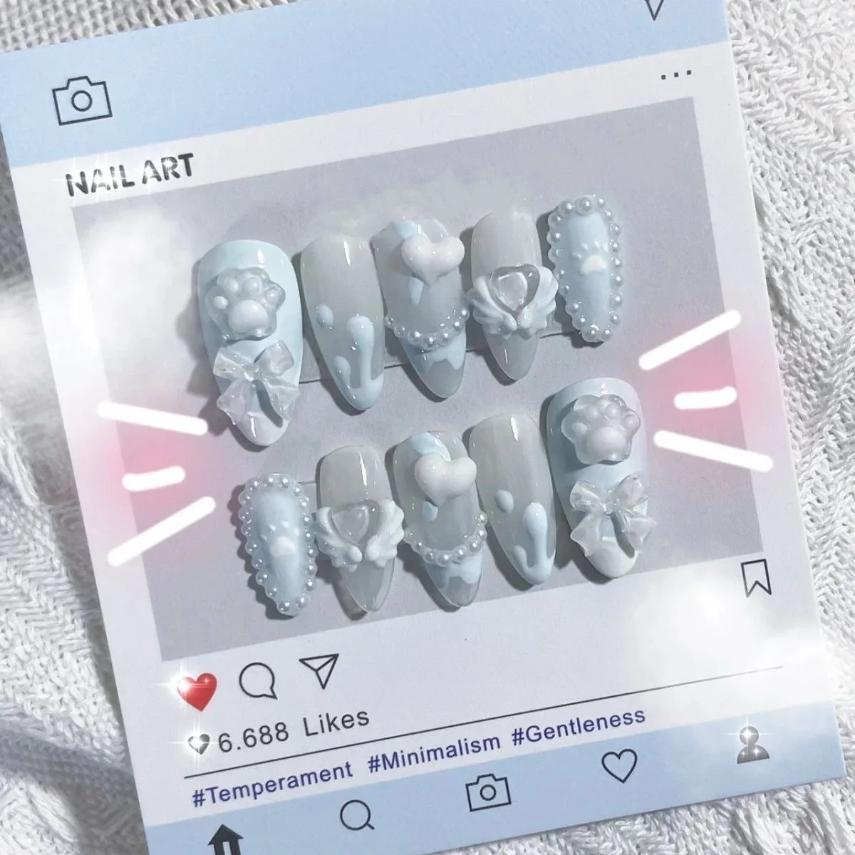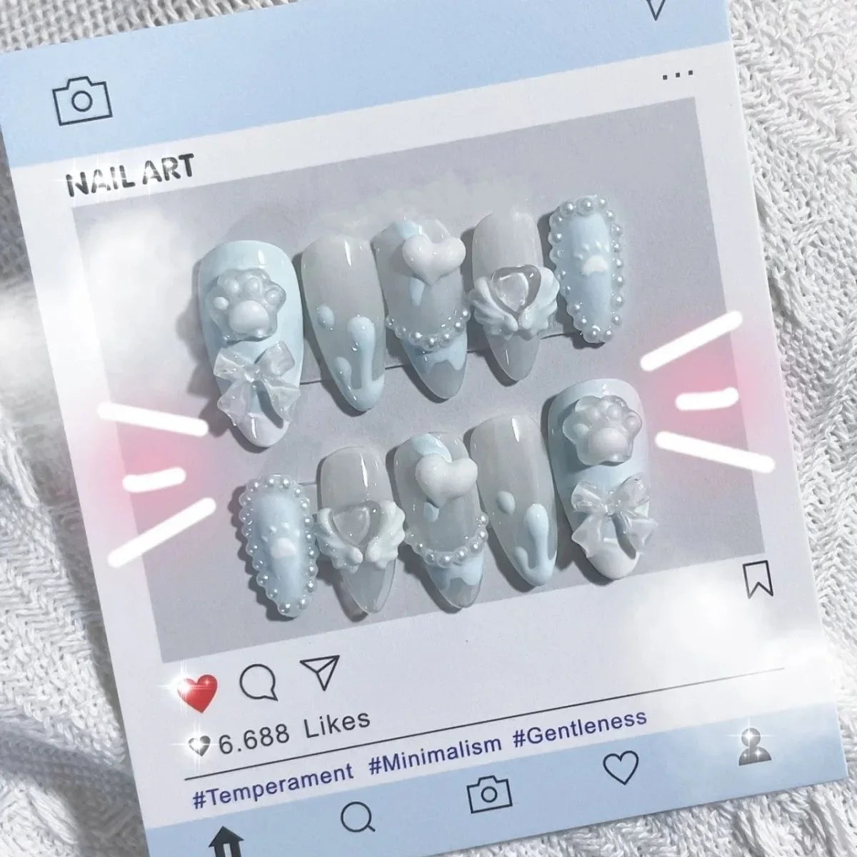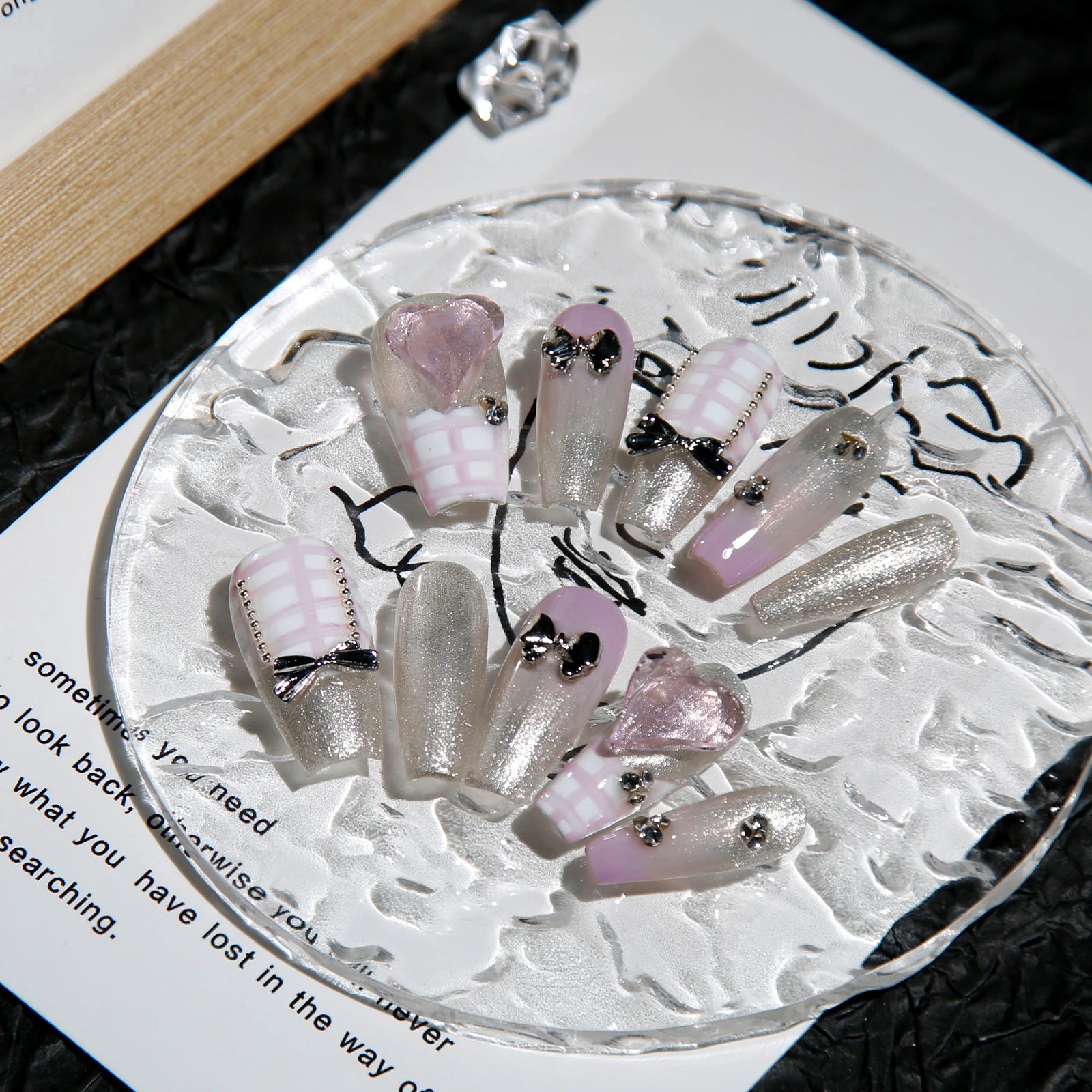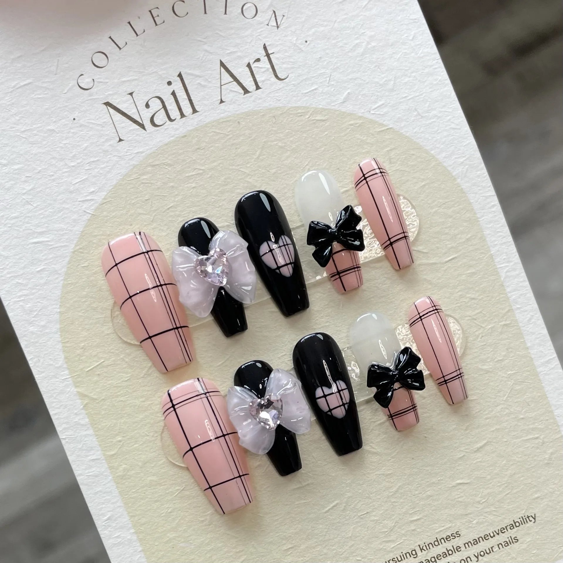 Daiiibabyyy 10pcs Handmade Anime Fake Press On Nails Professional Full Cover Japanese Decorated Manicuree With Bow Tie Wearable Nail Art Tip
