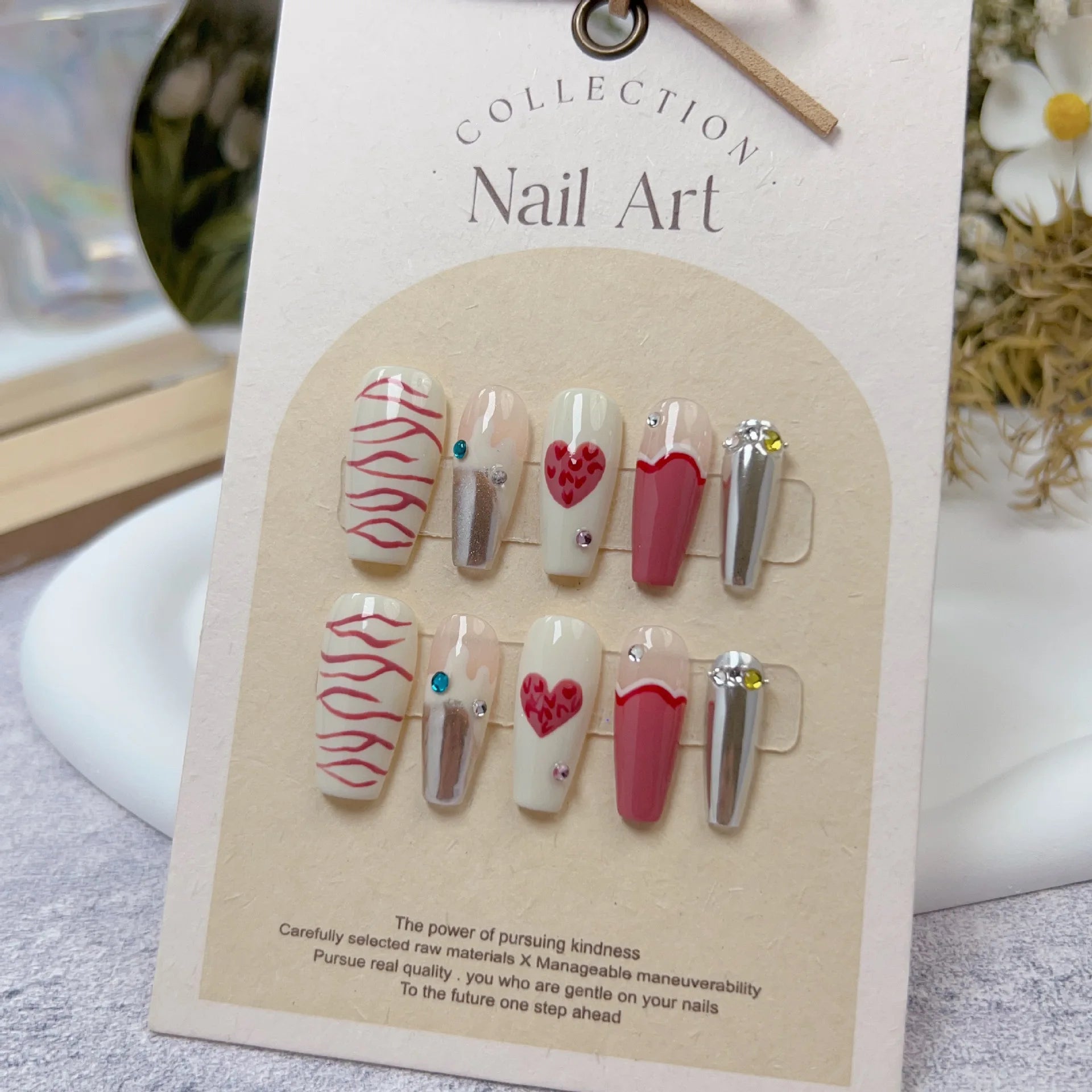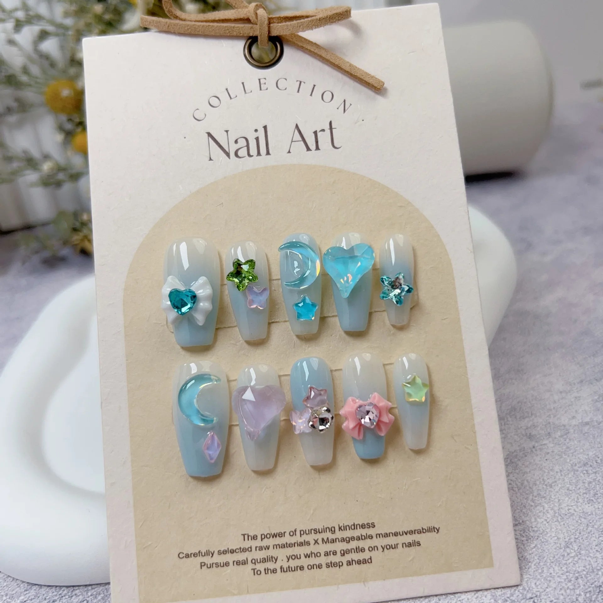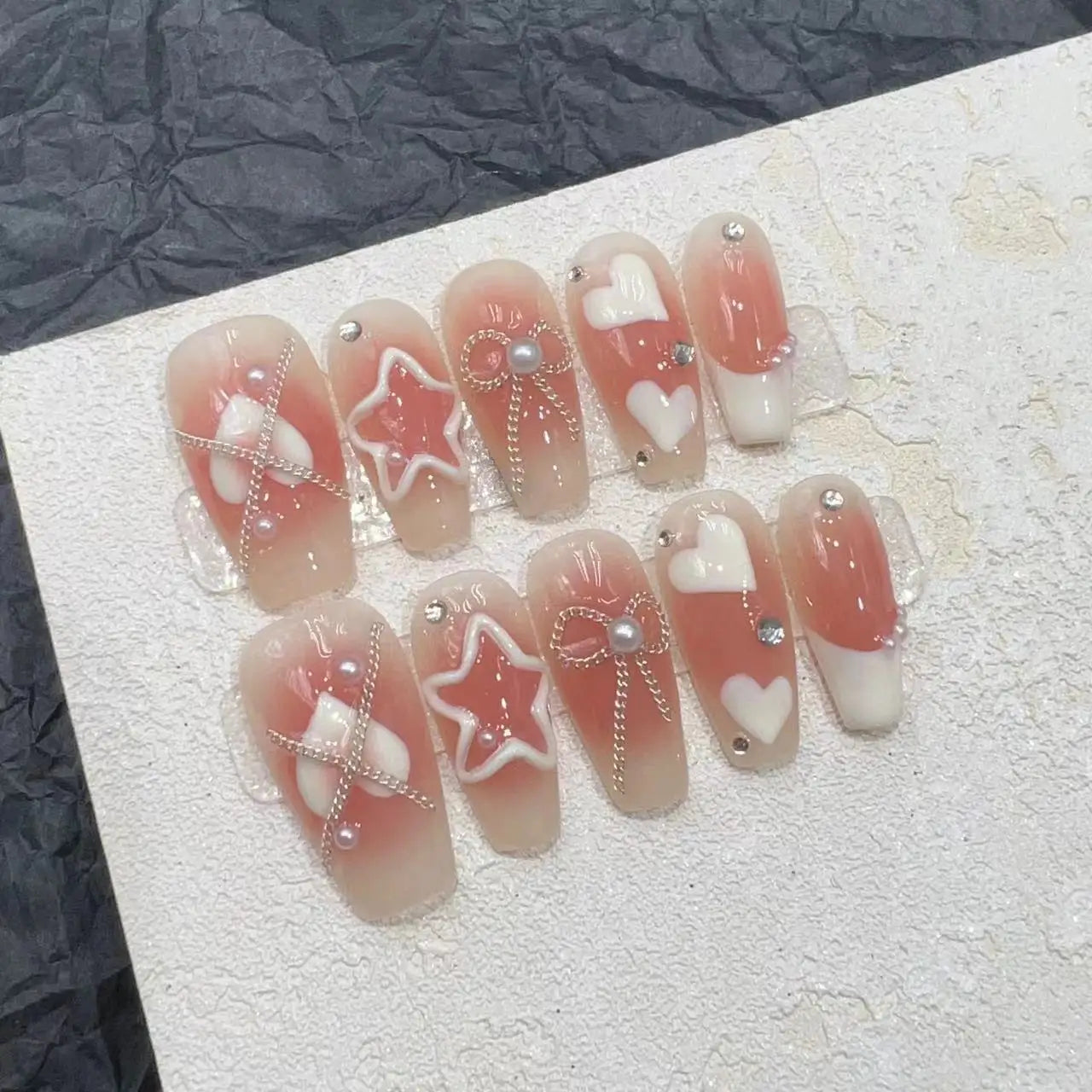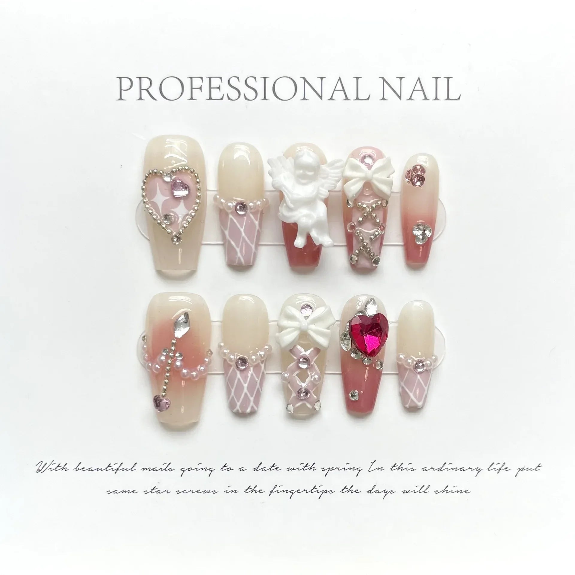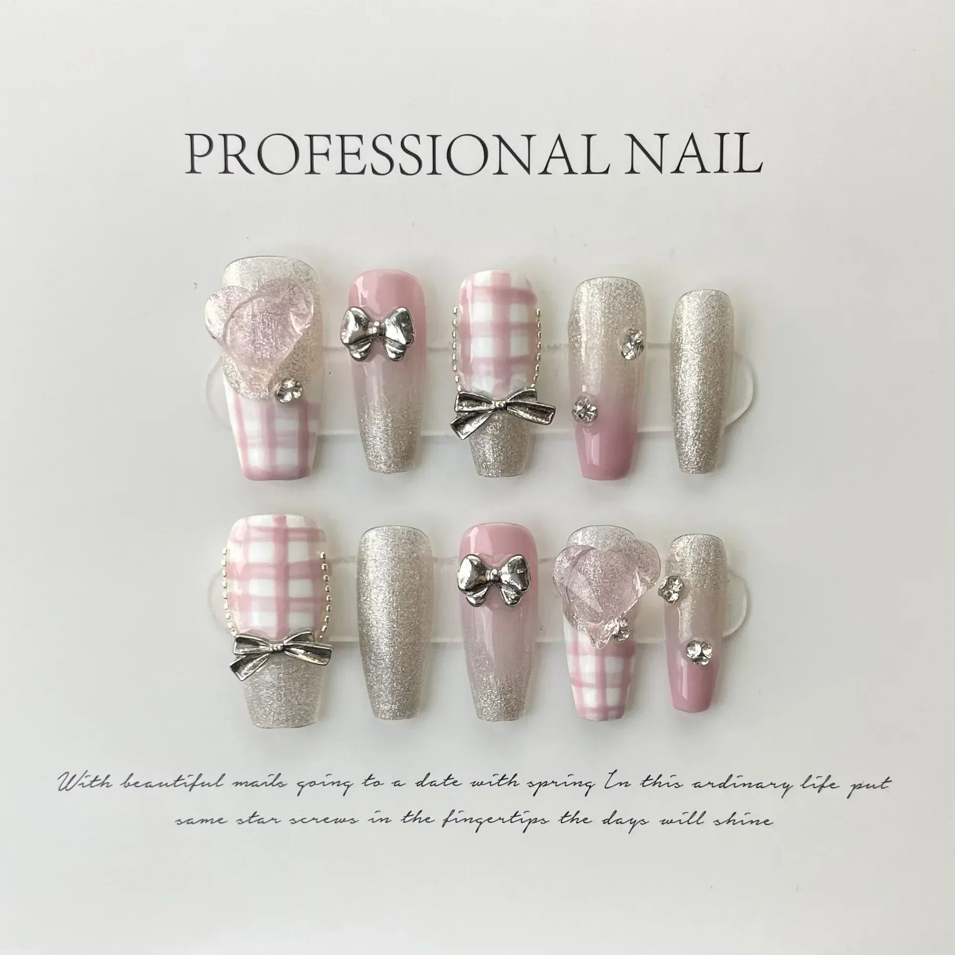 Daiiibabyyy 10pcs Handmade Anime Fake Press On Nails Professional Full Cover Japanese Decorated Manicuree With Bow Tie Wearable Nail Art Tip