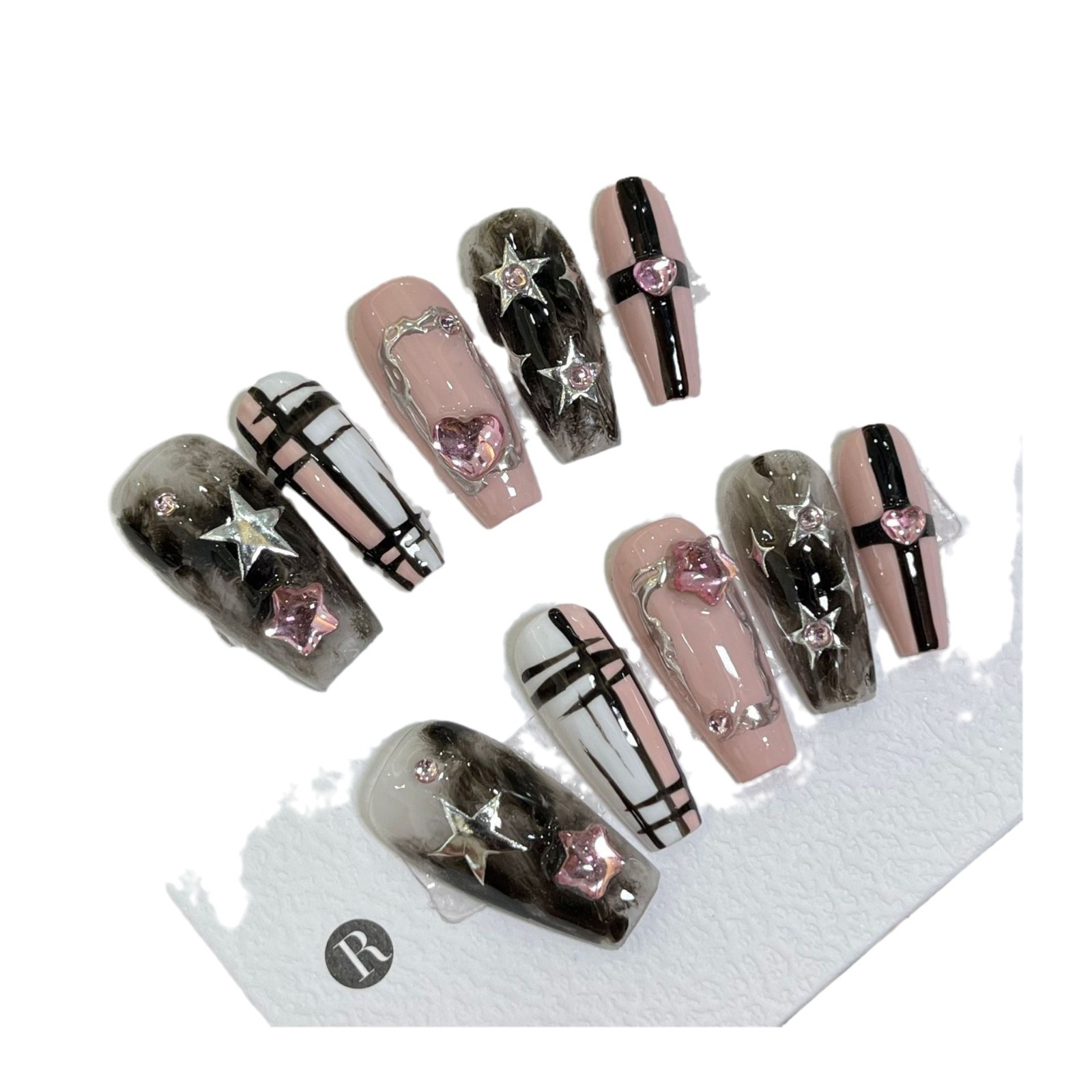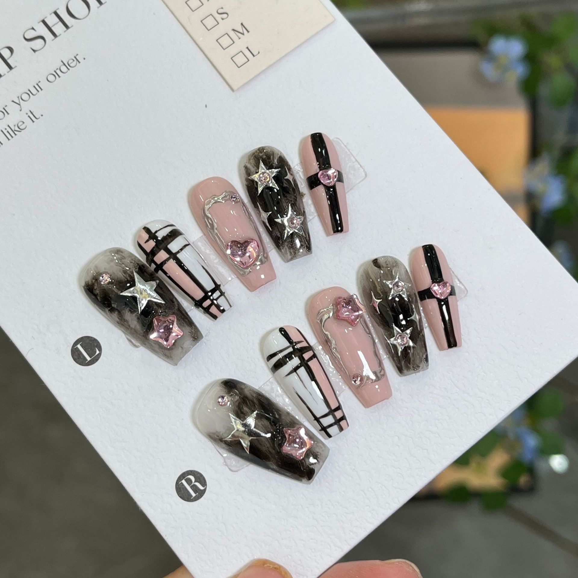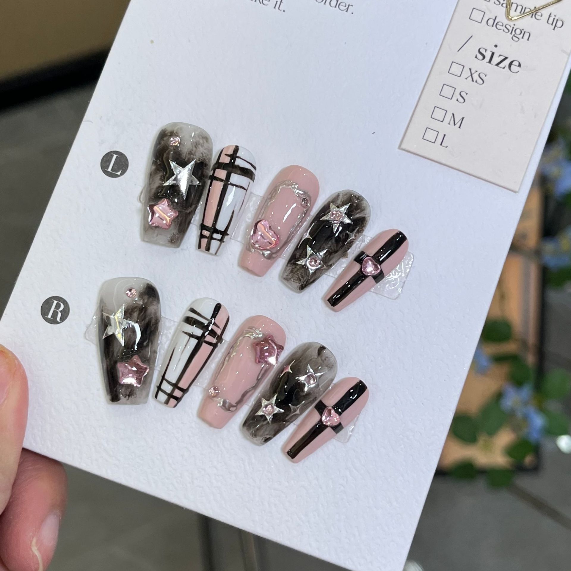 Daiiibabyyy 10pcs pink press on nails y2k Fake Nail with Glue black sweet cool Press on False Nails Wearable long coffin Full Cover Nail Tip