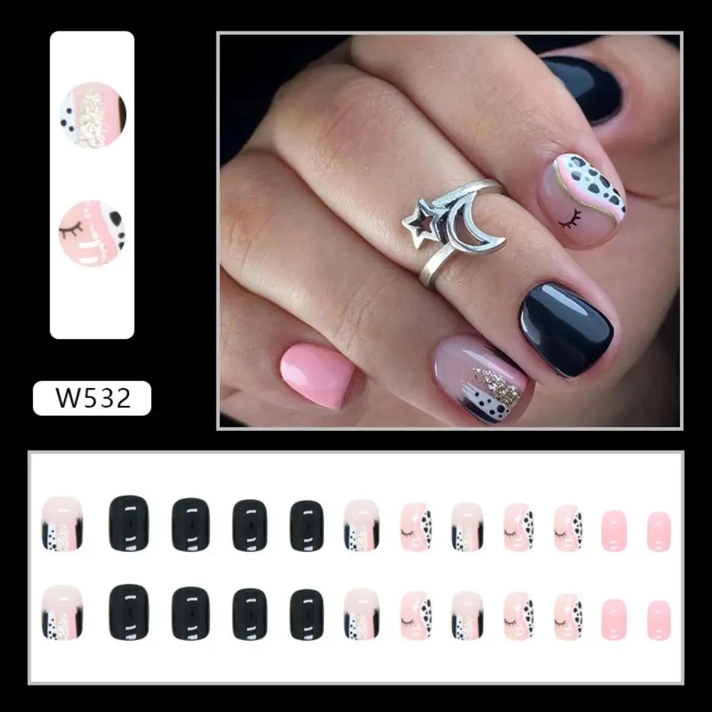 Daiiibabyyy 24pcs Manicure Press on Nails Full Cover White Edge Fake Nails Oval Long French