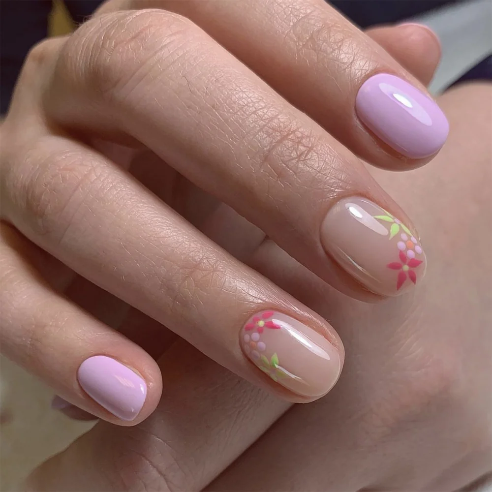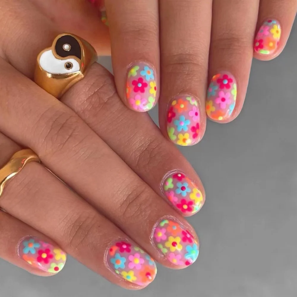 Daiiibabyyy 24pcs Wearable False Nails Art Finished Flower Design Full Cover Nail Sets Simple Ins Short Square Press on Nails Fake Nail Sets