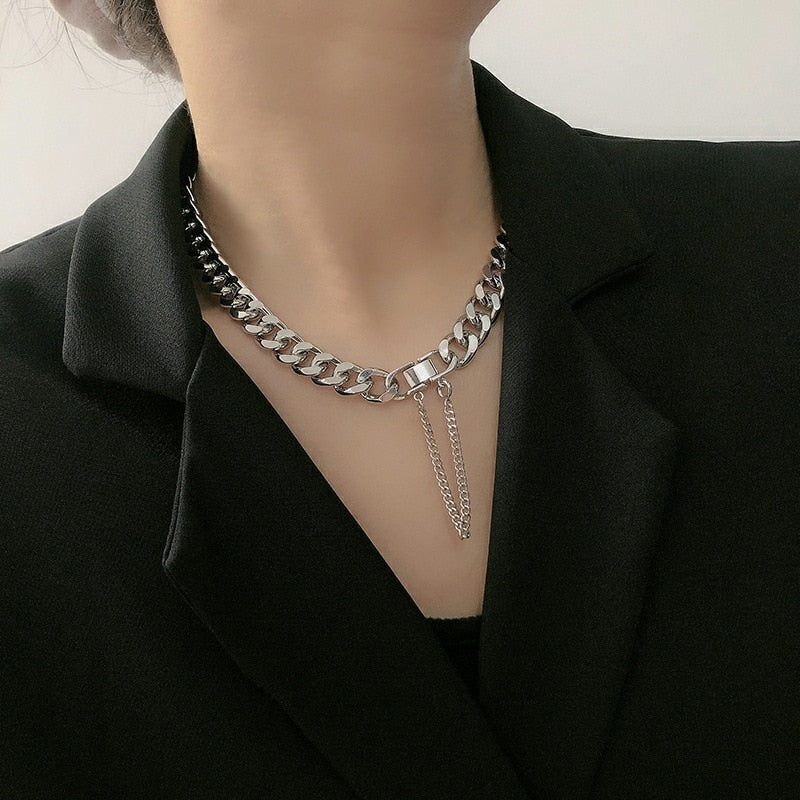 2022 Fashion Asymmetric Lock Necklace for Women Twist Gold Silver Color Chunky Thick Lock Choker Chain Necklaces Party Jewelry