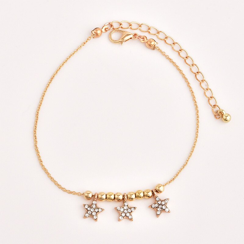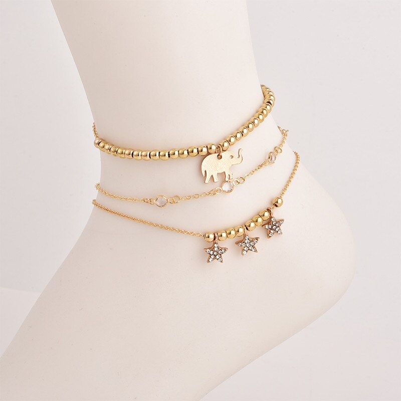 Daiiibabyyy 3 Pcs/set Bohemian Fashion Beaded Elephant Crystal Star Gem Pendant Gold Anklet Set Women Party Wedding Jewelry Accessories