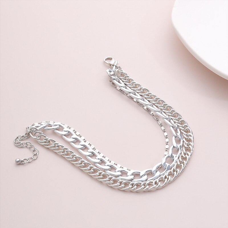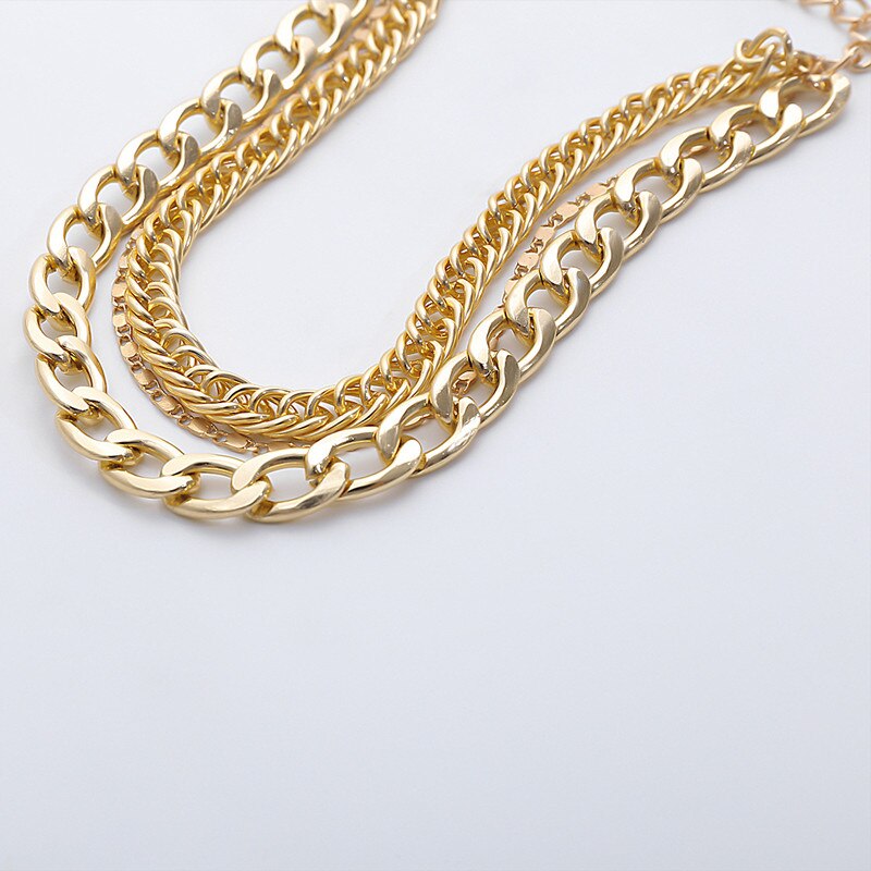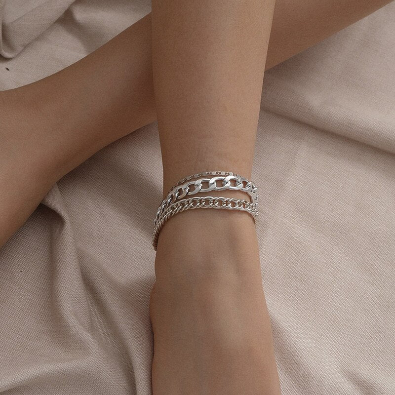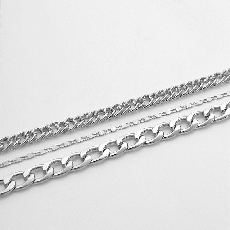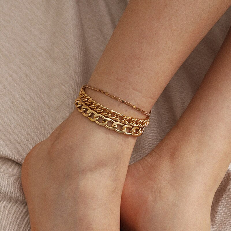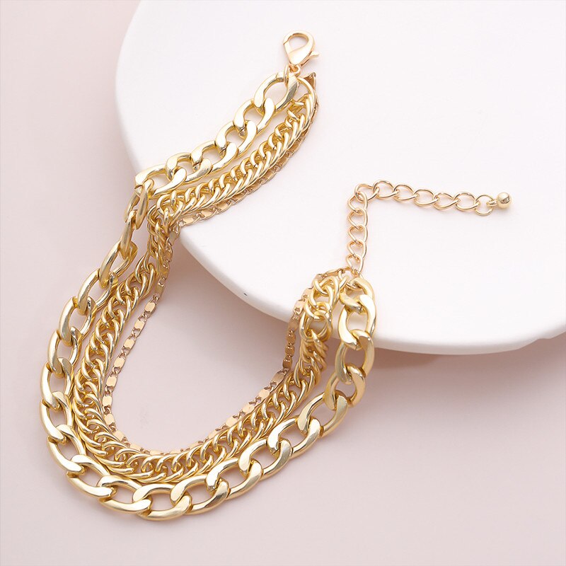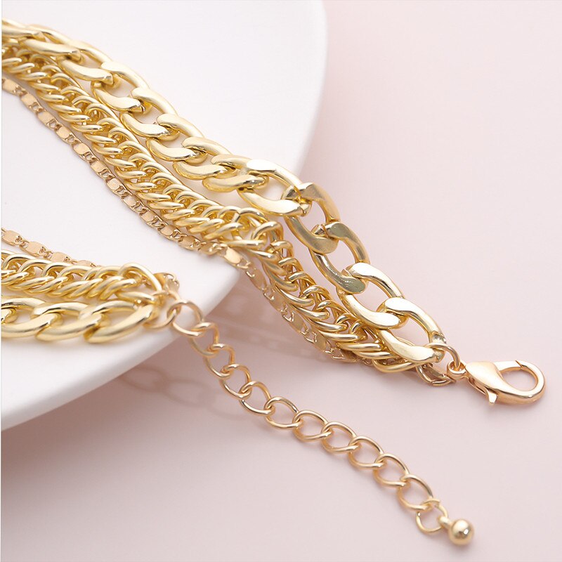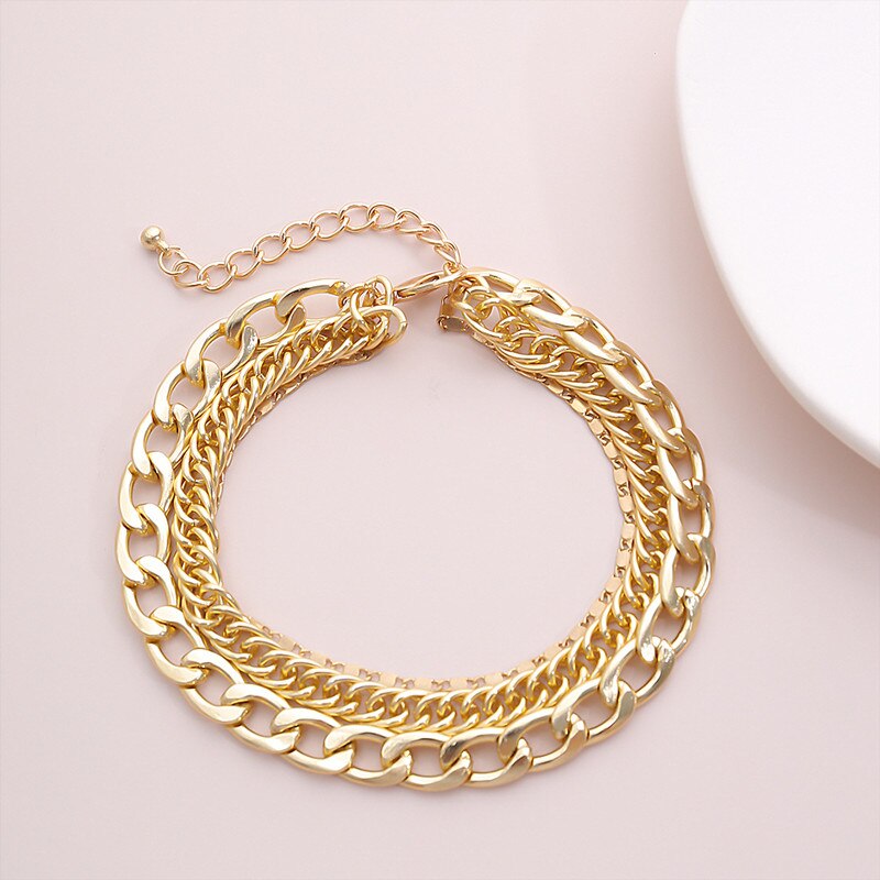 Daiiibabyyy 3 Pcs/Set Punk Fashion Cuban Thick Anklet Bracelet Simple Gold Color Metal Anklet Set Barefoot Sandals Foot Jewelry
