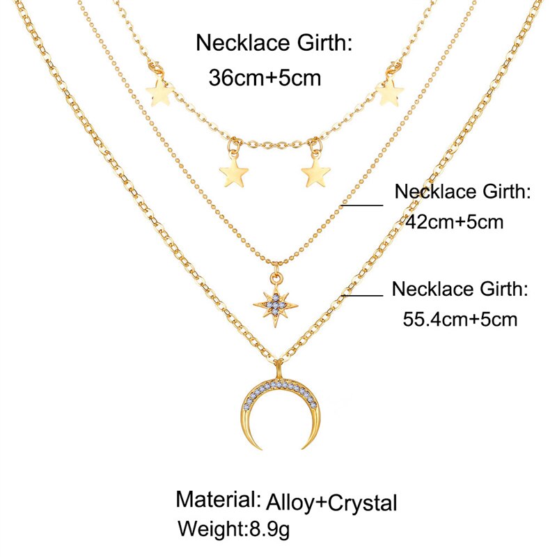 Daiiibabyyy Boho Rhinestone Star Moon Geometric Feather Pendant Necklaces for Women Multilayer Chain Necklace Collar Female Jewelry GiftsColor:Gold