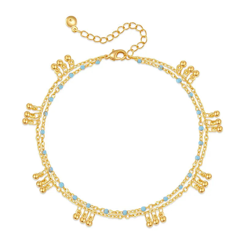 Daiiibabyyy  Color Double Layer Small Beads Chain Anklet for Women Light Luxury Summer Boho Vocation Foot Chain Party Jewelry Gifts