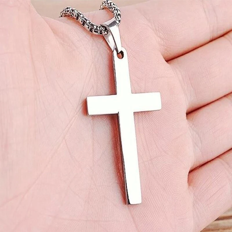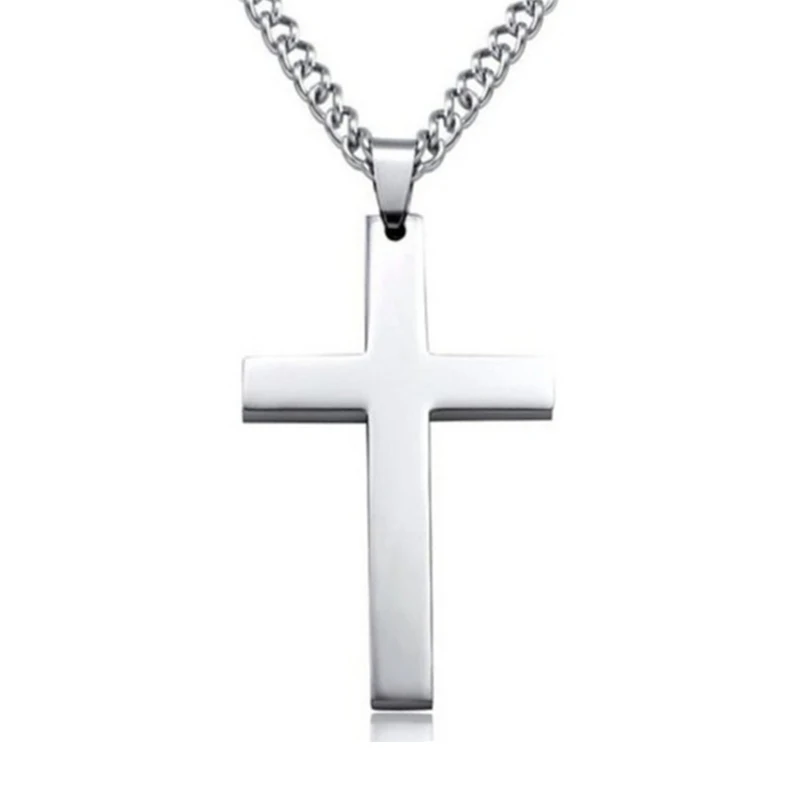 Daiiibabyyy Cross Pendant Necklace Christian Jesus Single Titanium Cross Necklaces Pendants Metal Choker Punk Hip Hop Jewelry Gift