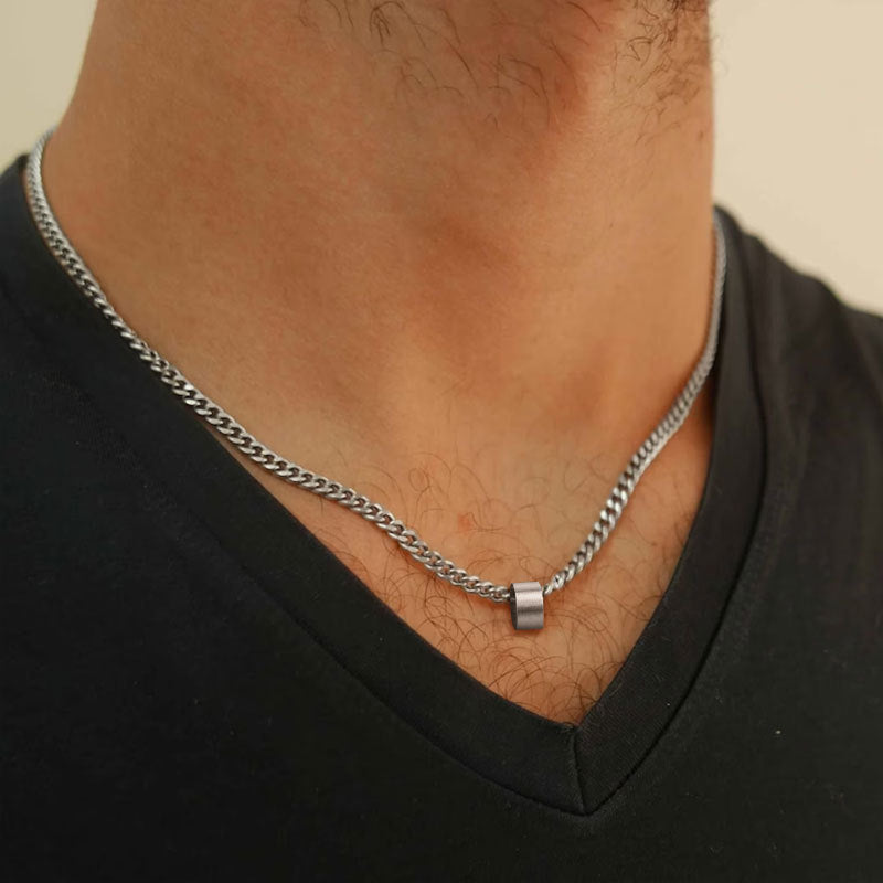 Daiiibabyyy Men's Beaded Cuban Chain Necklaces,Waterproof Never Fade Stainless Steel Collar Jewelry Gift for Dad Husband Boyfriend