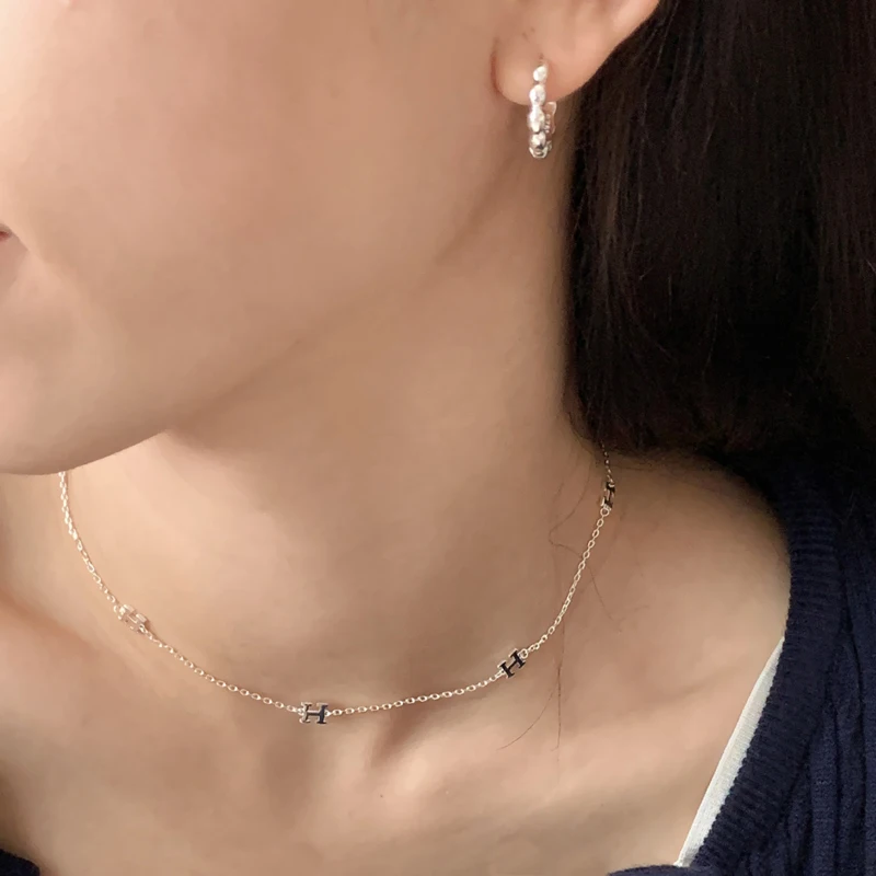 Daiiibabyyy New 925 Sterling Silver Choker Alphabet Necklace For Women O-Chain Initial Letter H Pendant Clavicle Necklaces Girl Fine Jewelry
