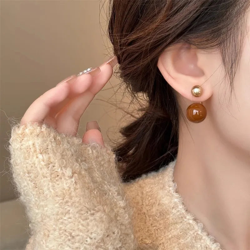 Daiiibabyyy New Design Features Front and Rear Contrasting Round Bead Pendants Earrings For Women Unusual Jewelry Accessories For Girls