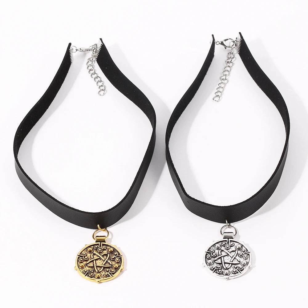 DAIIIBABYYY - Punk Yennefer Necklace Medallion Pendant Black Leather Choker Necklaces Wild Hunt Game Cosplay Gothic Chain Women Jewelry