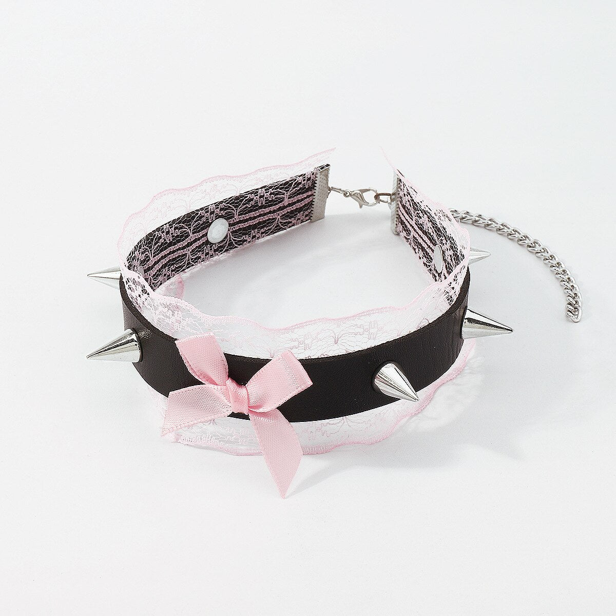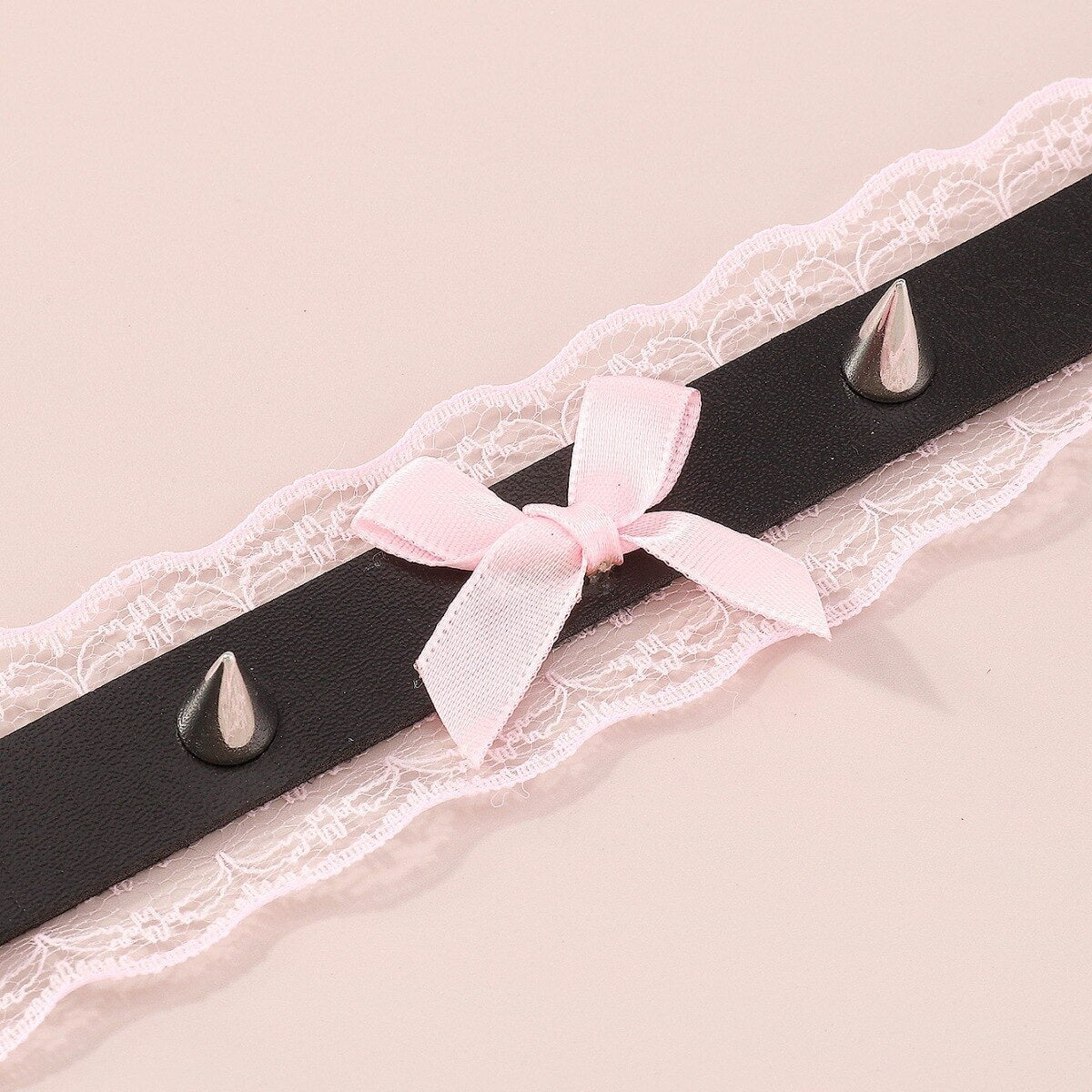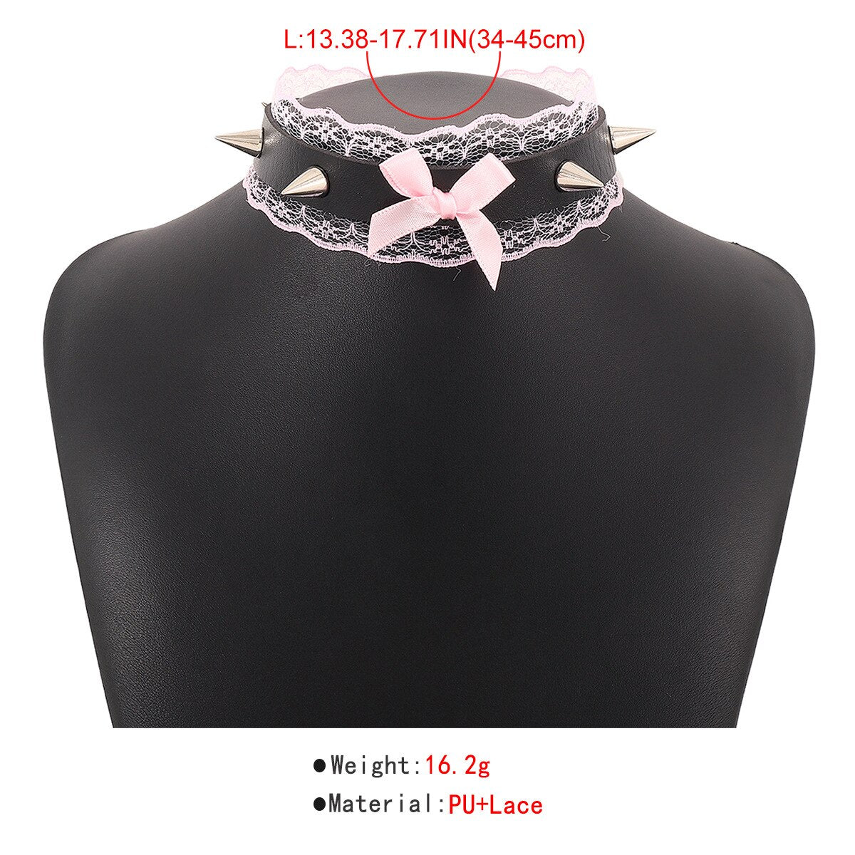 Daiiibabyyy Sexy Y2K Accessories Pink Lace Necklaces for Women Egirl Goth Punk Bowknot Rivets Necklace Cosplay Party Chokers 90s Aesthetic
