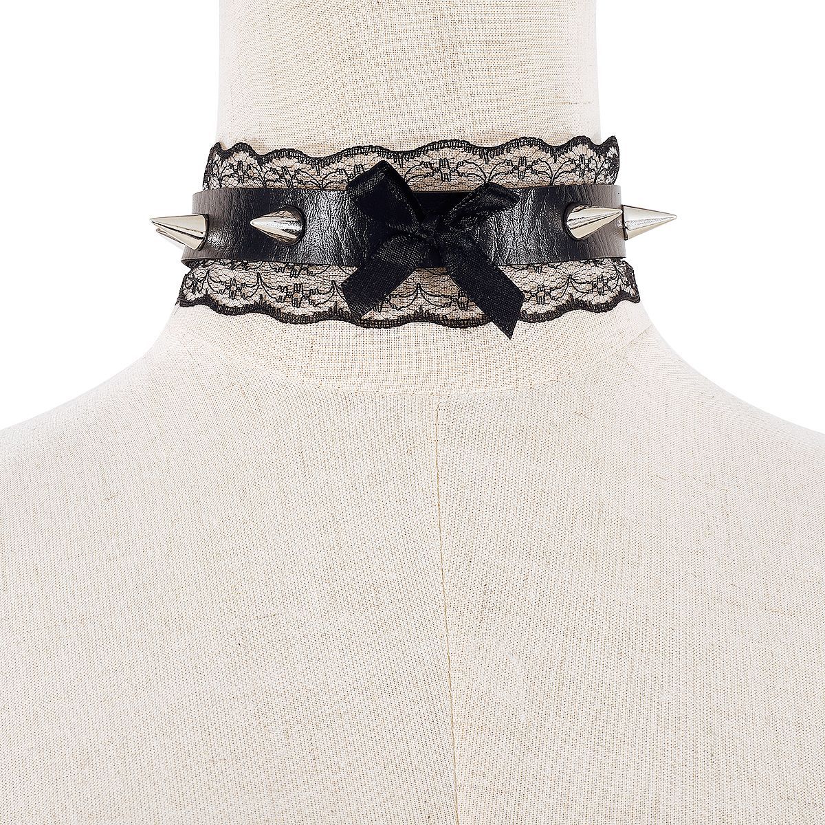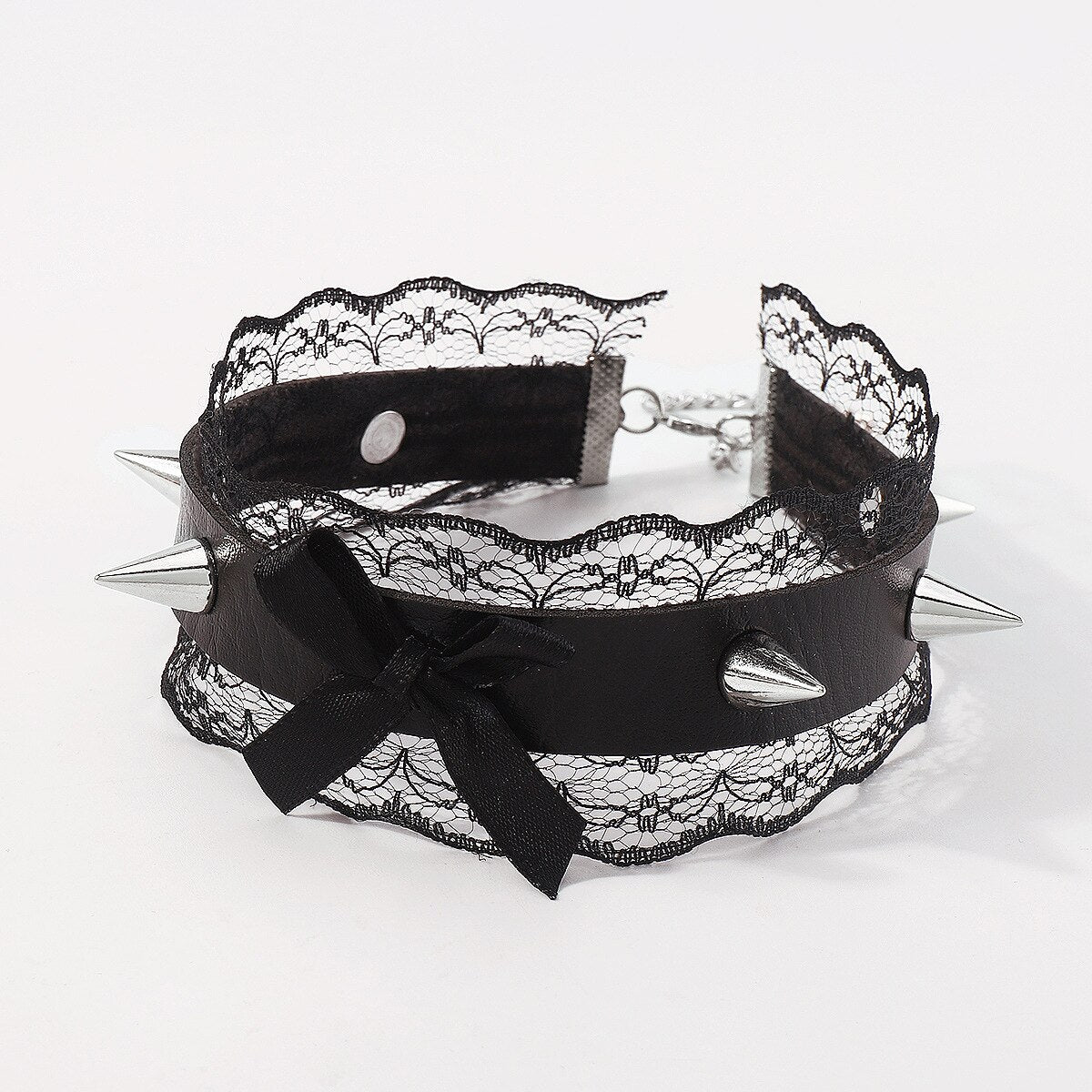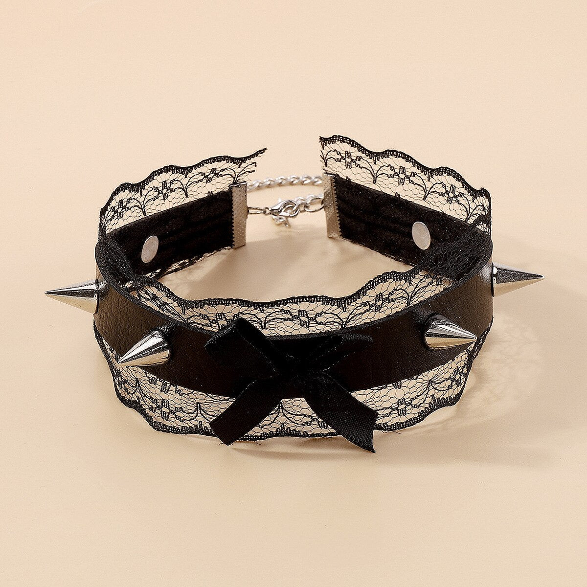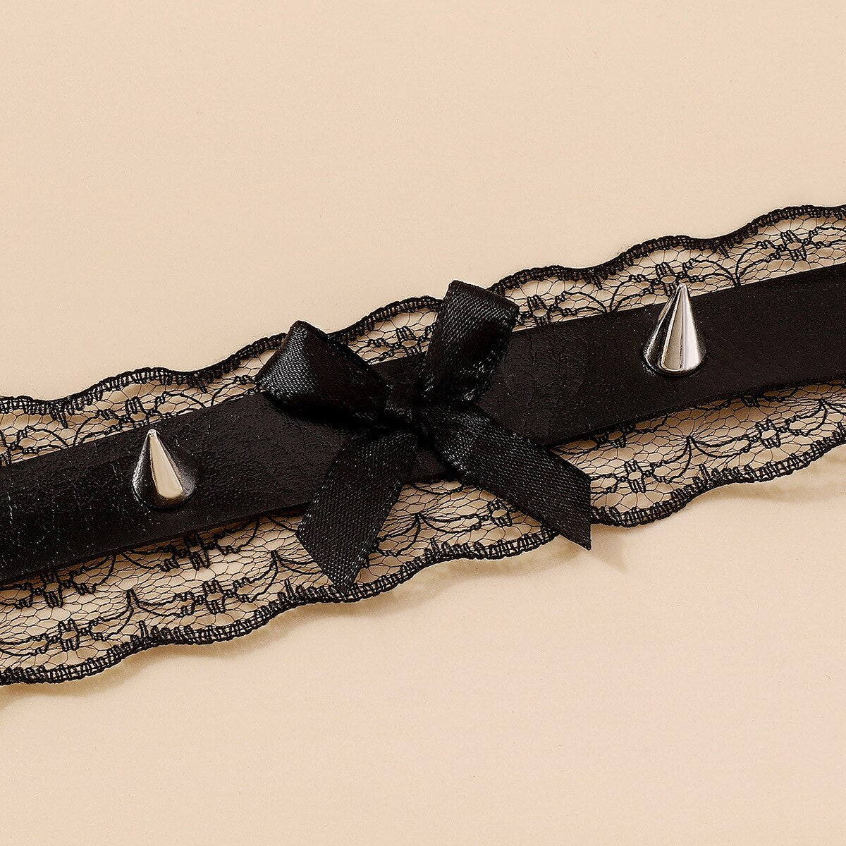 Daiiibabyyy Sexy Y2K Accessories Pink Lace Necklaces for Women Egirl Goth Punk Bowknot Rivets Necklace Cosplay Party Chokers 90s Aesthetic