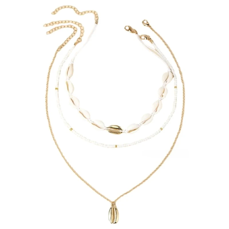 Daiiibabyyy Three Layer Beach Seashell Choker Necklaces Bohemian Natural Shell Necklace Short Collar For Women Rope Chain Choker Accessories
