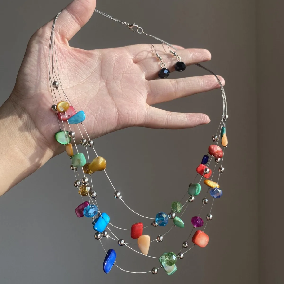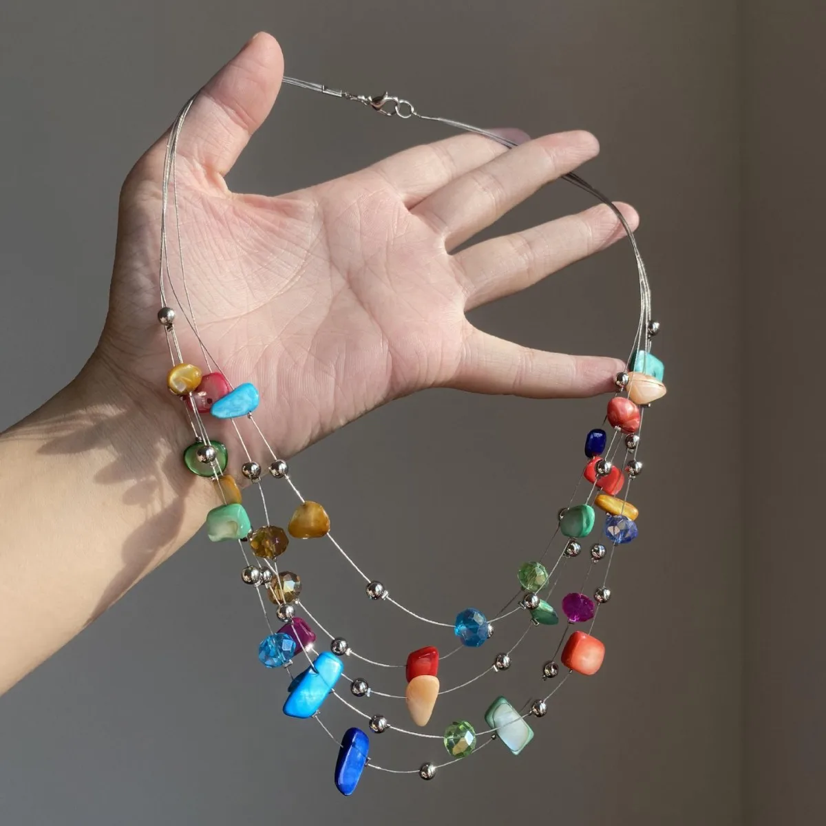 Daiiibabyyy Trendy Necklaces For Women Shell Crystal Mixed Multilayer Necklace New Women's Neck Chain Ladies Clothes Accessories