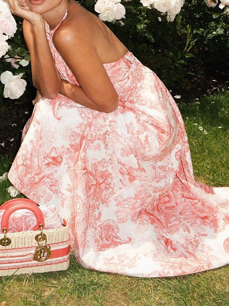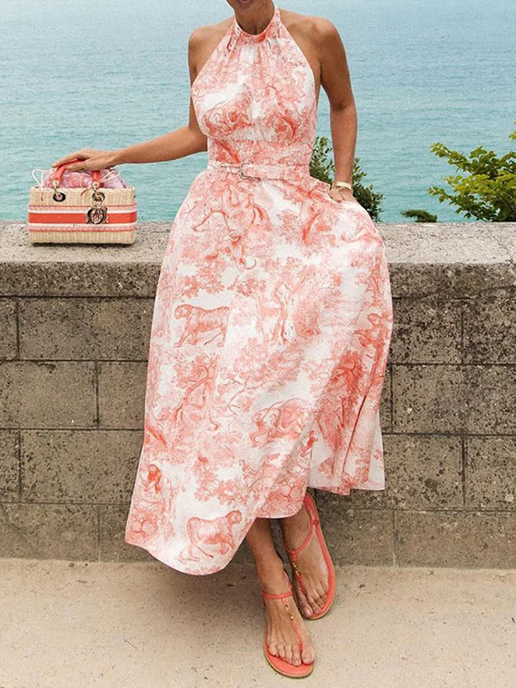 DAIIIBABYYY - Backless Patchwork Printing Loungewear Dress, Women Summer Halter Causal Holiday Dress, Sleeveless Sexy Ladies Party Dress