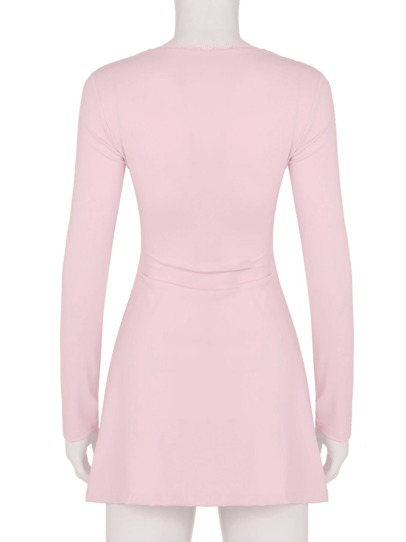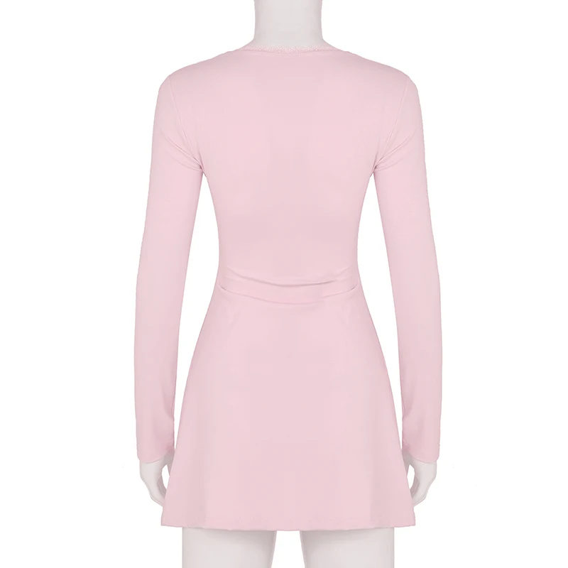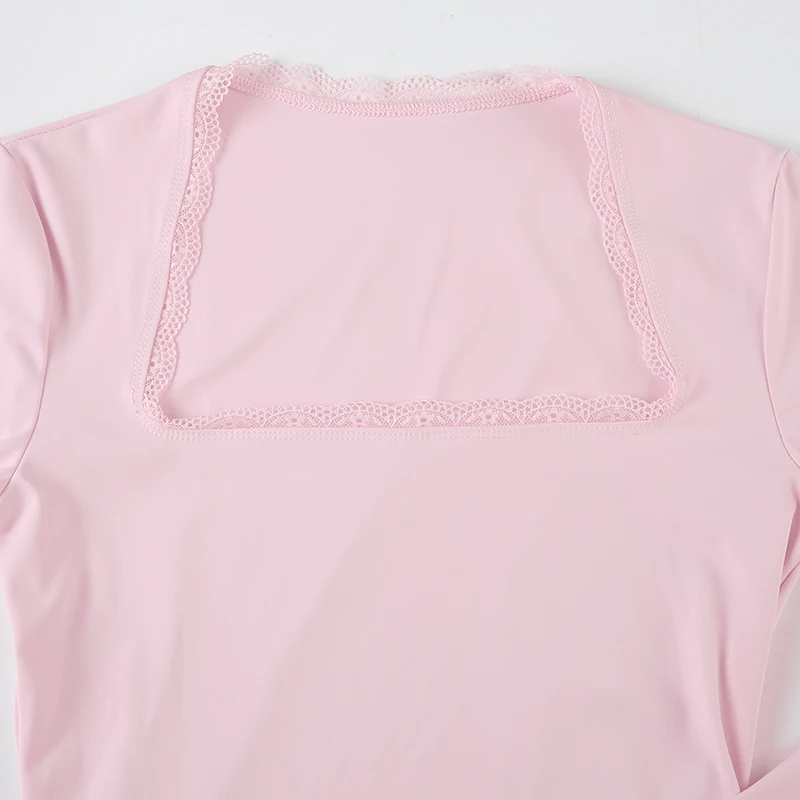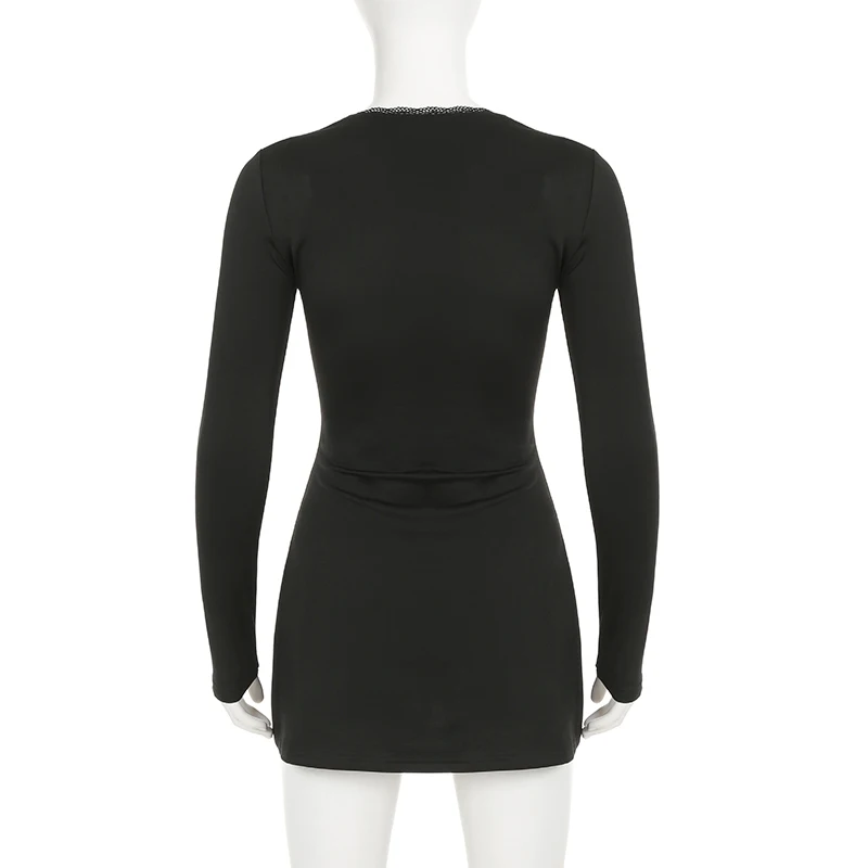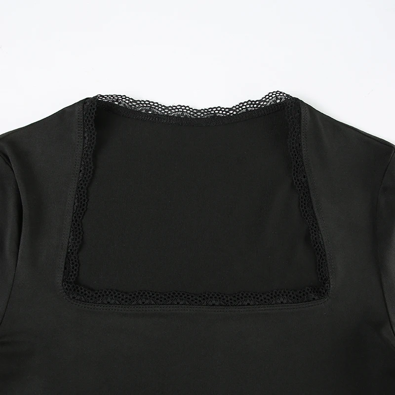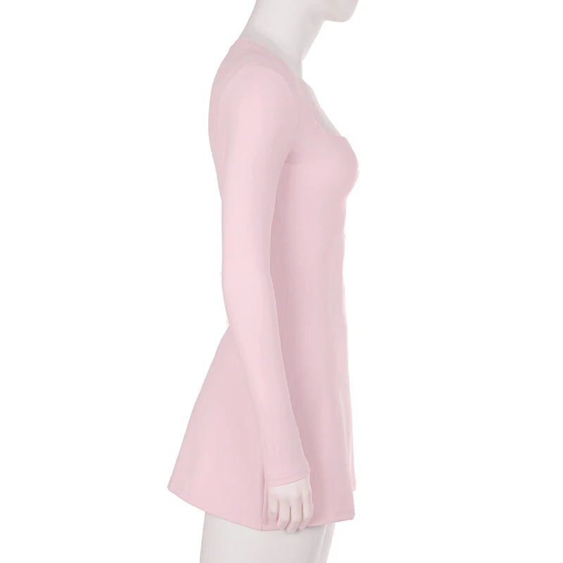 DAIIIBABYYY - Casual Solid Lace Trim Bodycon Dress Slim Square Collar Long Sleeve Mini Dresses For Women 2025 Spring Autumn Streetwear