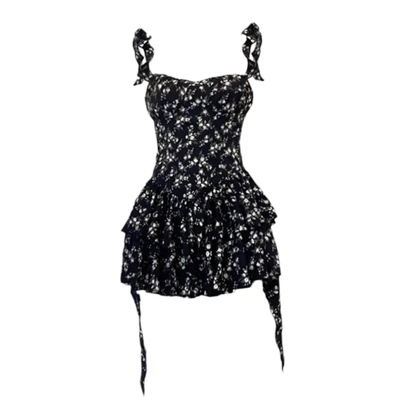 DAIIIBABYYY - Chic Women Dress Square Neck Lace-up Sleeveless Slim Fit Hot Girls Camis Dresses French Printed Floral Skirts Preppy Clothes