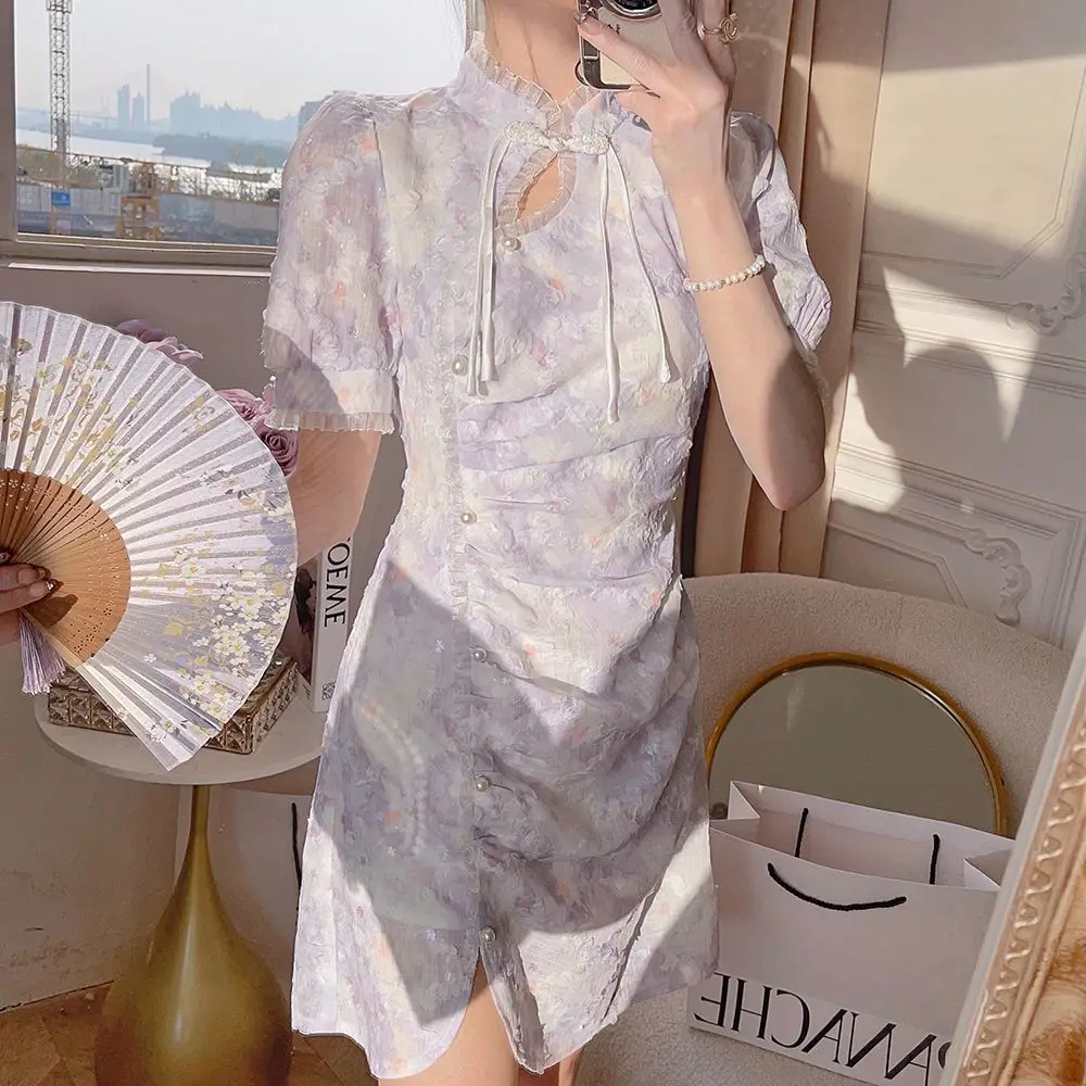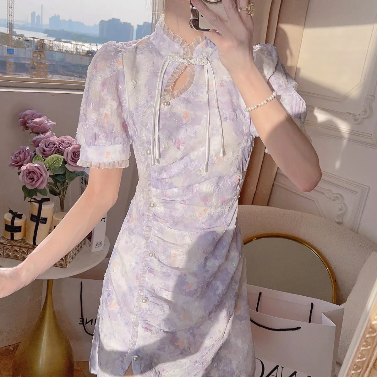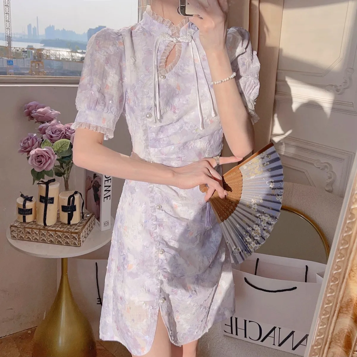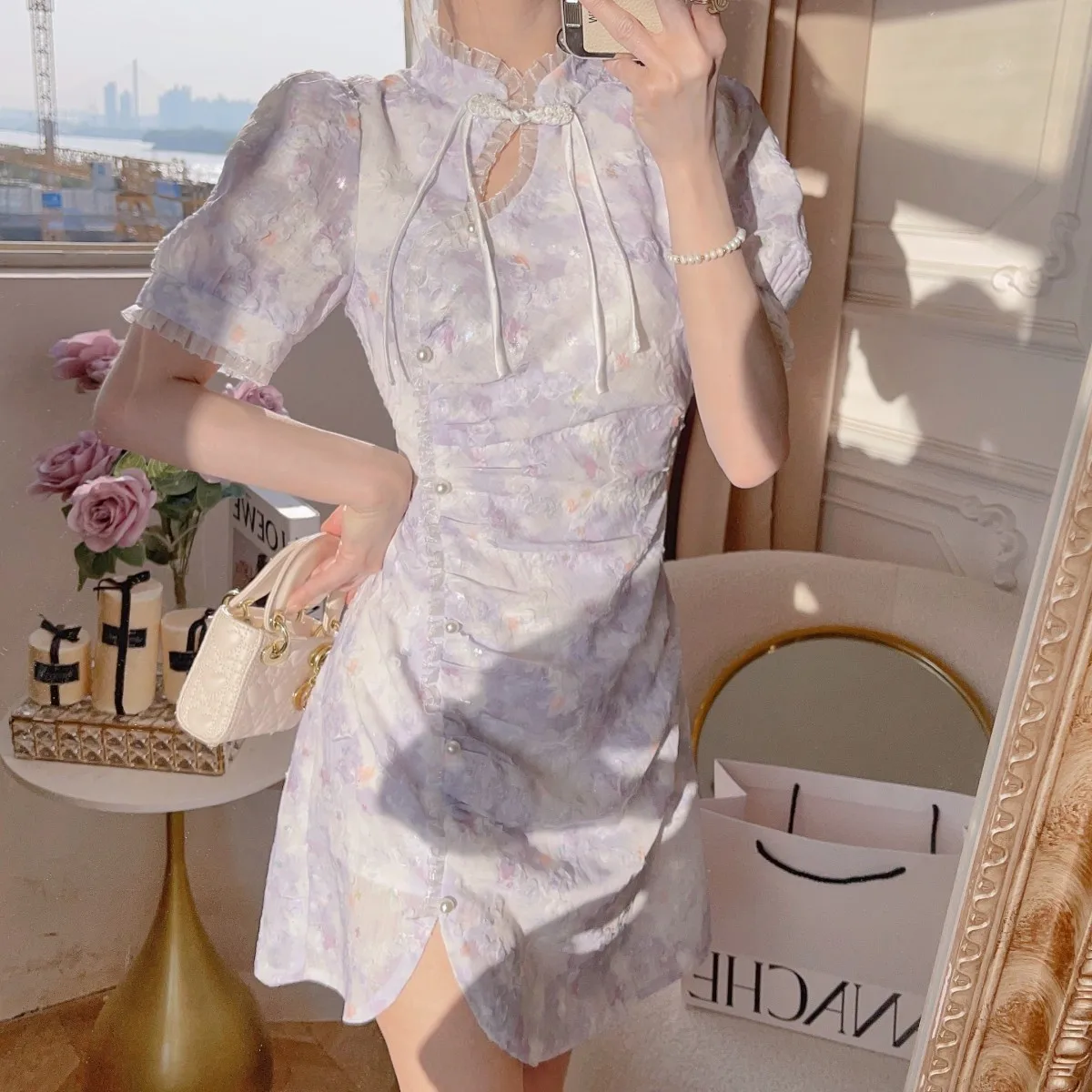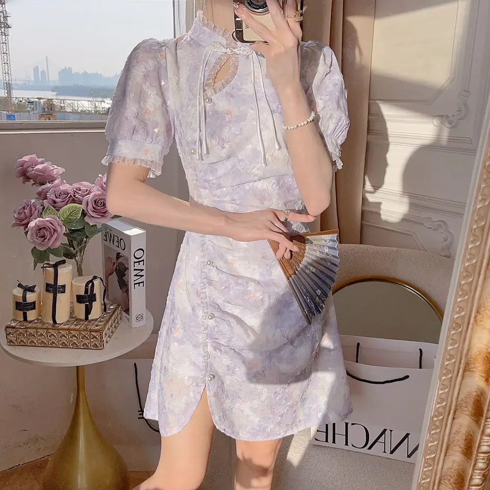 DAIIIBABYYY - Chinese Improved Style Cheongsam Qipao Short Sleeve Dress Women's New Summer Casual Party Dress