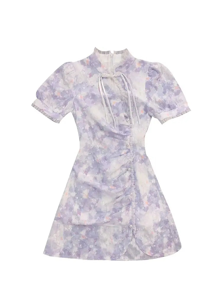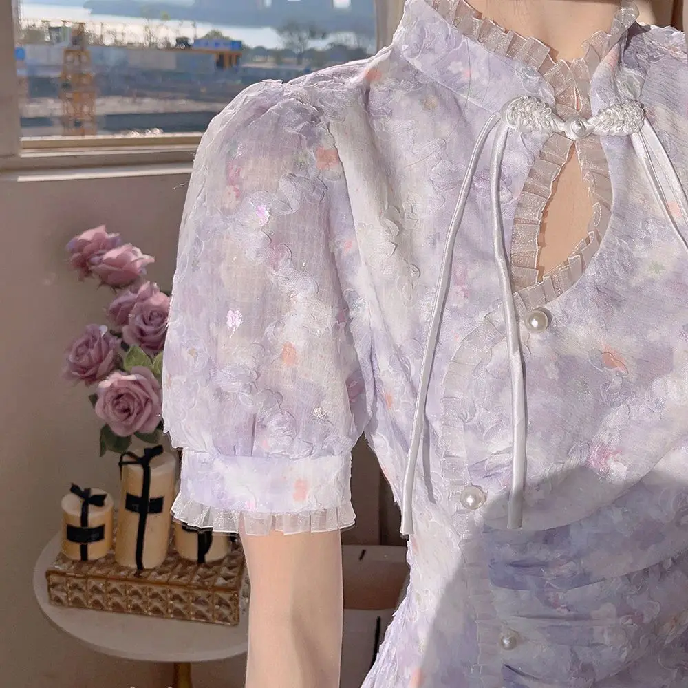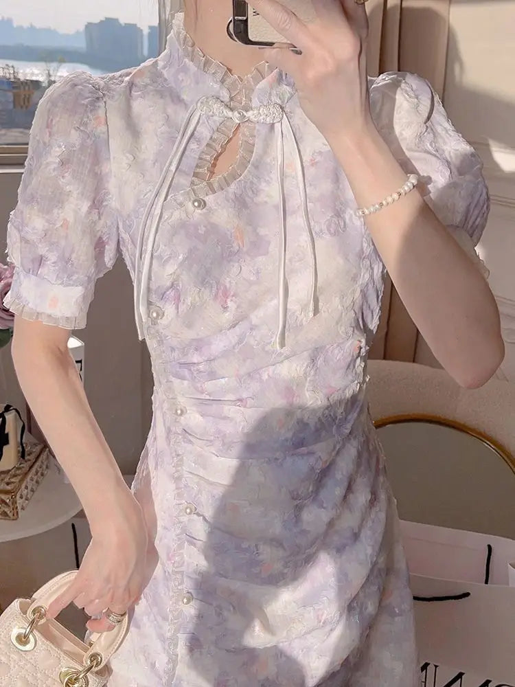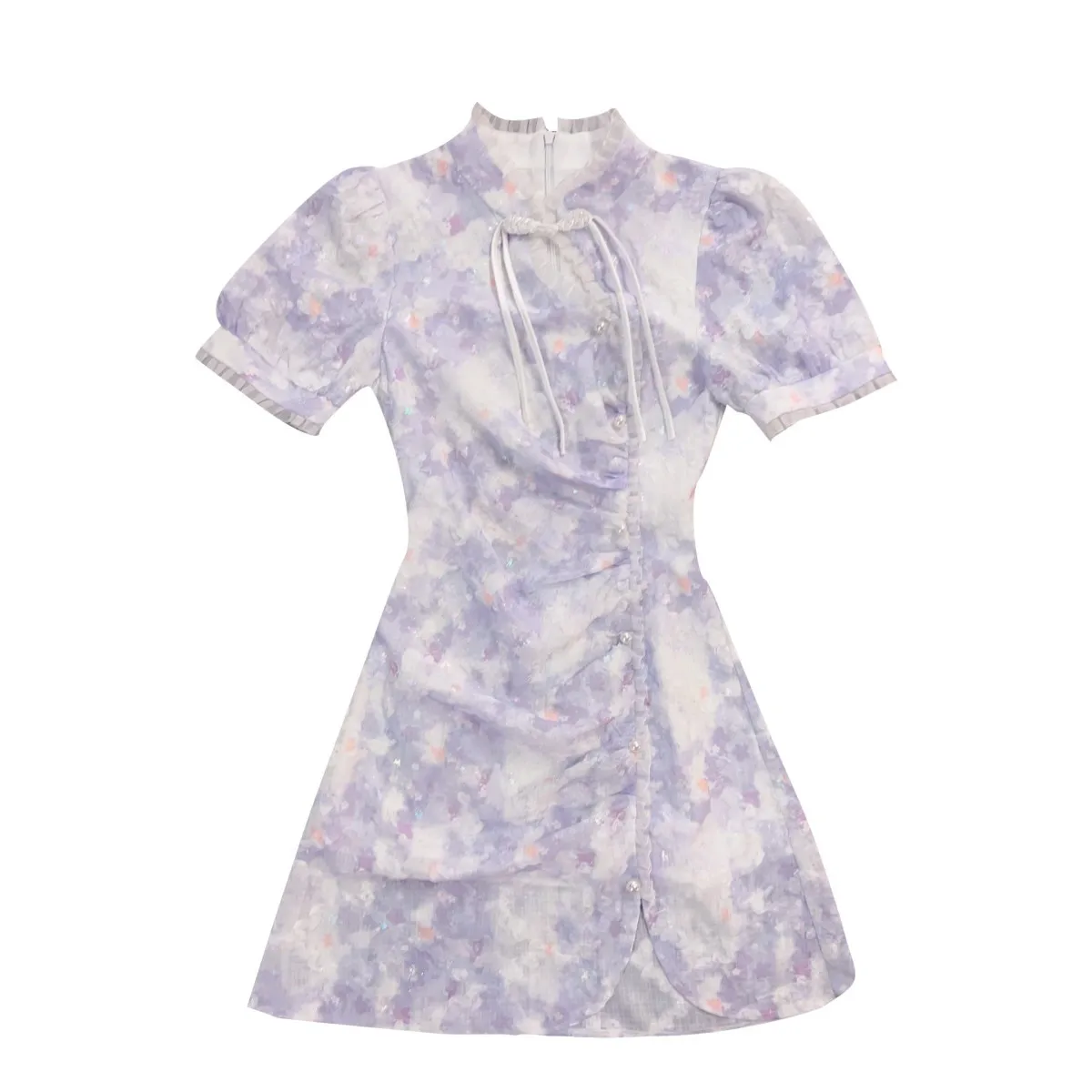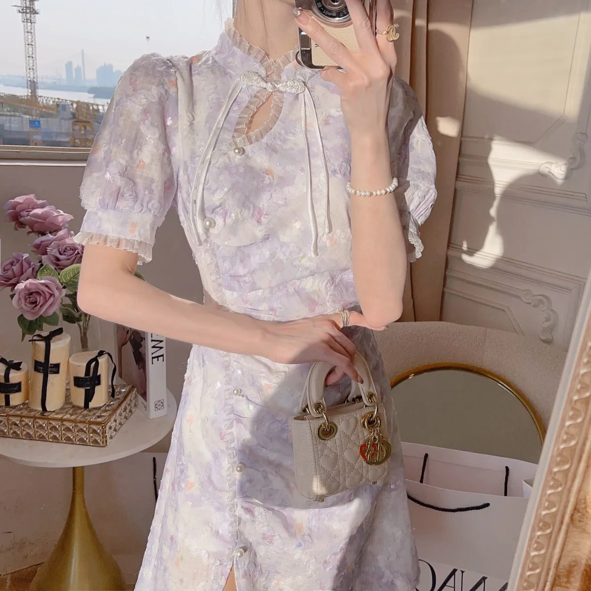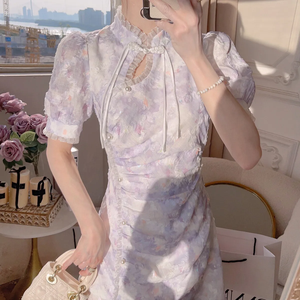 DAIIIBABYYY - Chinese Improved Style Cheongsam Qipao Short Sleeve Dress Women's New Summer Casual Party Dress