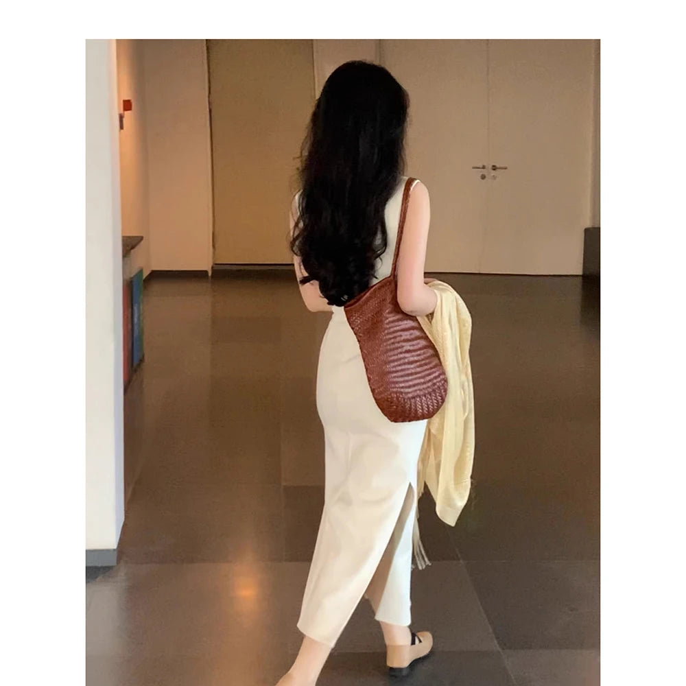 DAIIIBABYYY  -  Chinese Style Hot Girl Gold Peony Qipao Women's Summer Retro Slim Fit Sleeveless White Long Dress Fashion Female Clothes