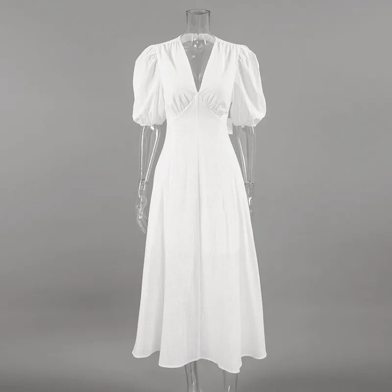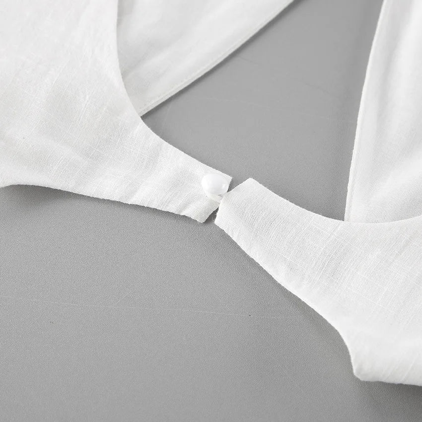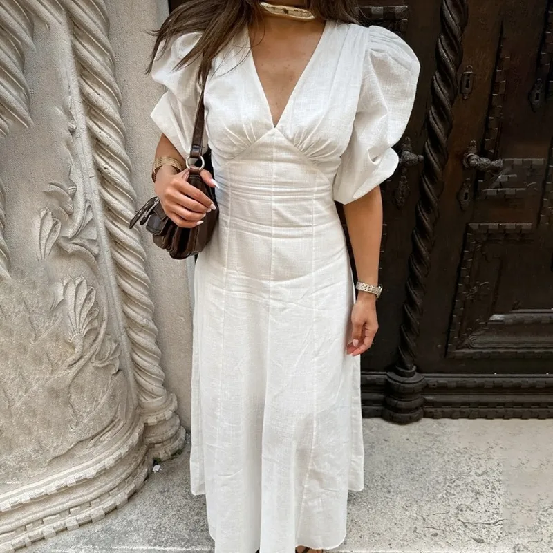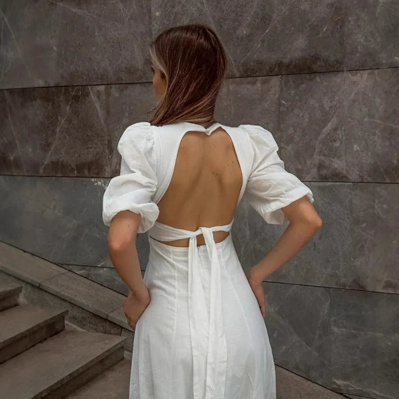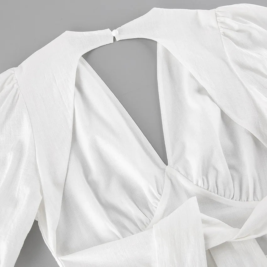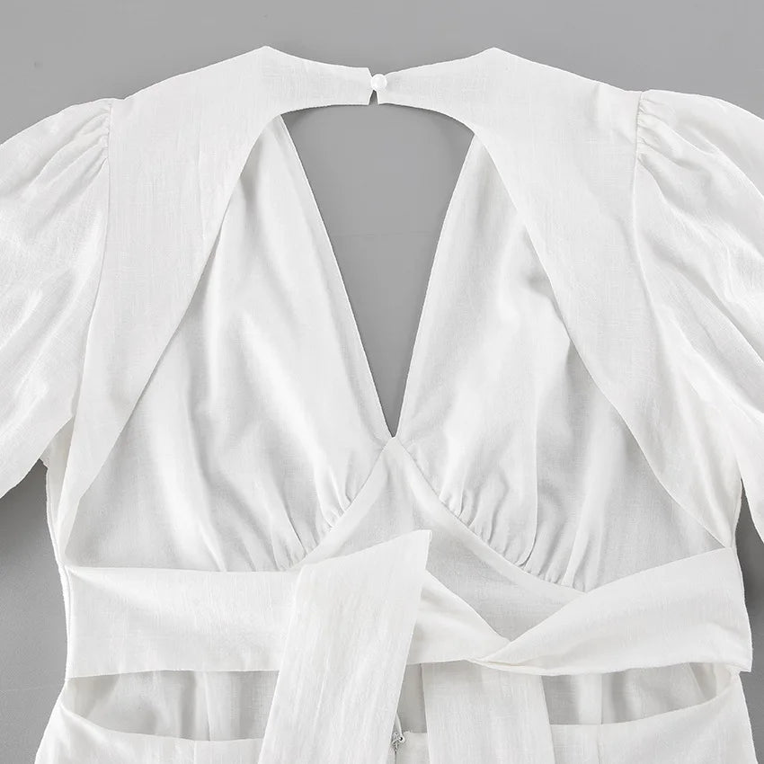 Daiiibabyyy Elegant Backless Dress White Fashion Hollow Bow Lace-up High Waist V-Neck Dress Luxury Fashion Women Party Evening Dress