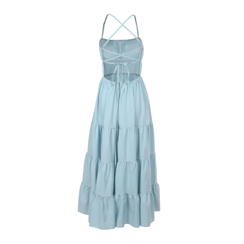 Daiiibabyyy Elegant Backless Patchwork Long Dress Women's Summer Slim Party Dress Bandage High Waist Solid Color Sleeveless Long Dress