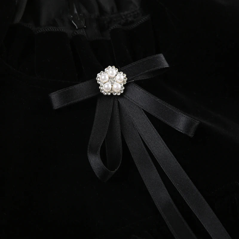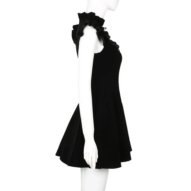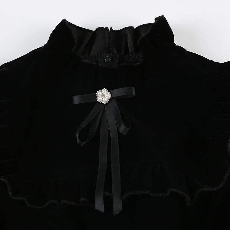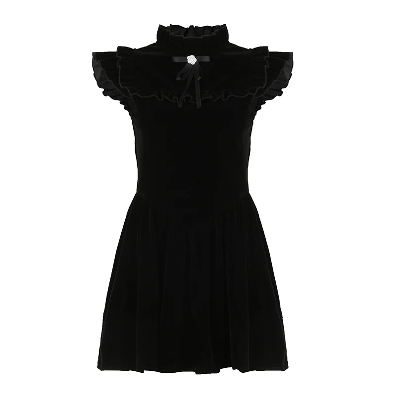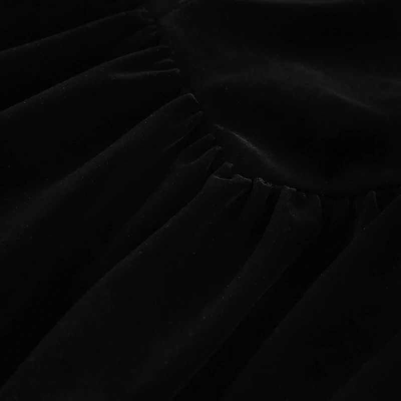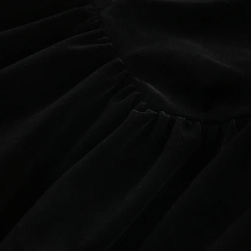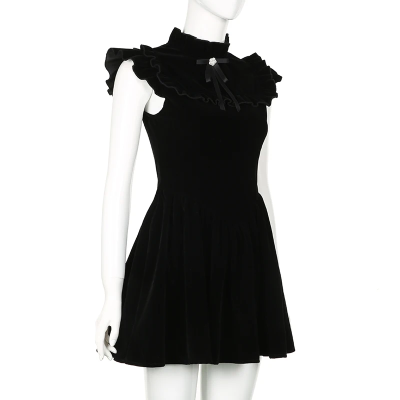 DAIIIBABYYY - Elegant Black Velvet Dress Retro 2000s Ruched Patchwork Short Sleeve Party Dresses for Women Japanese y2k Ladies Outfits