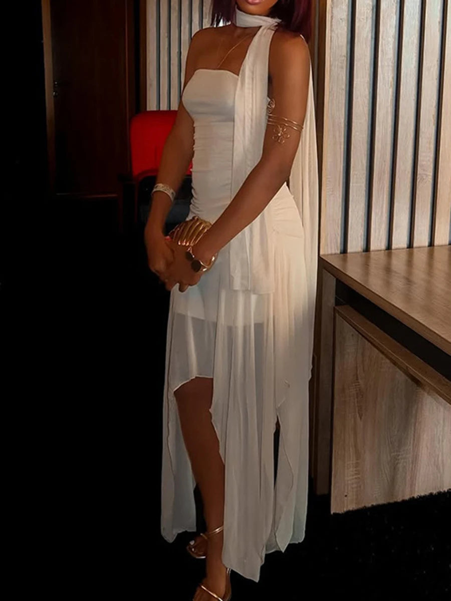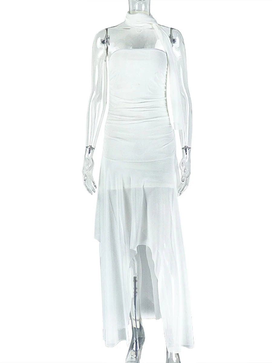 DAIIIBABYYY - Elegant Irregular Slimming Temperament Dress for Women Strapless Sleeveless Backless High Waist Sheer Dress Female Fashion