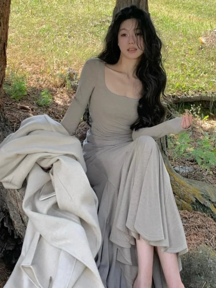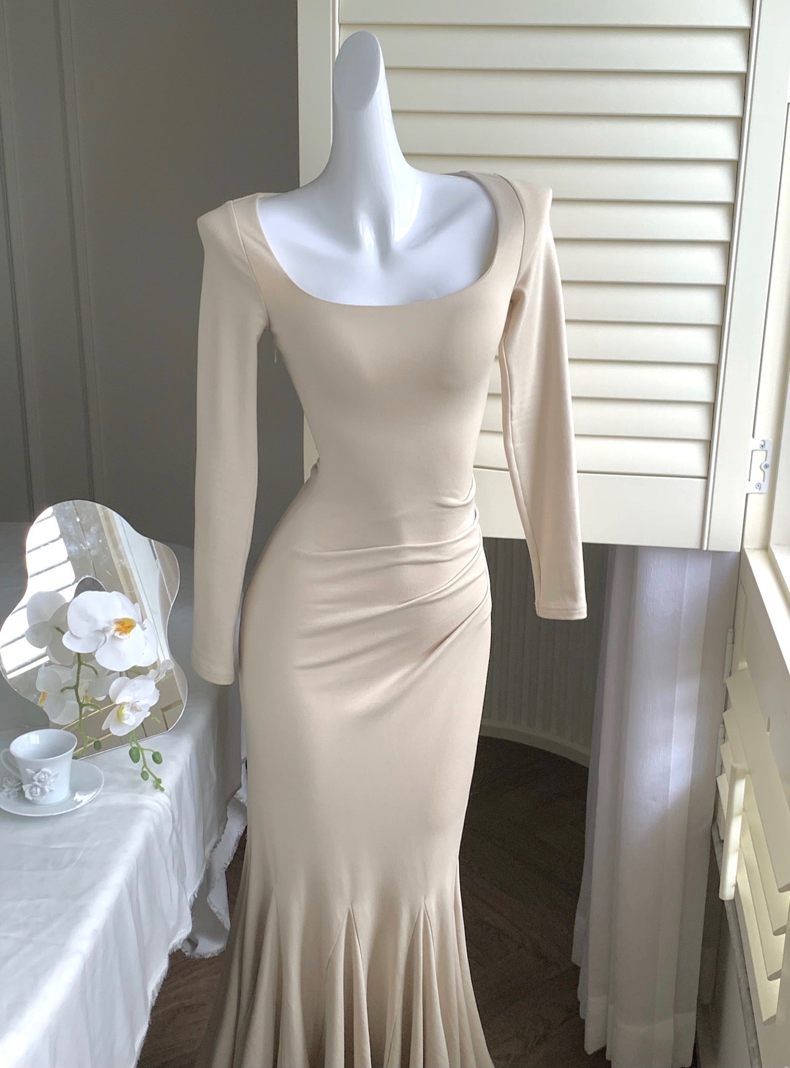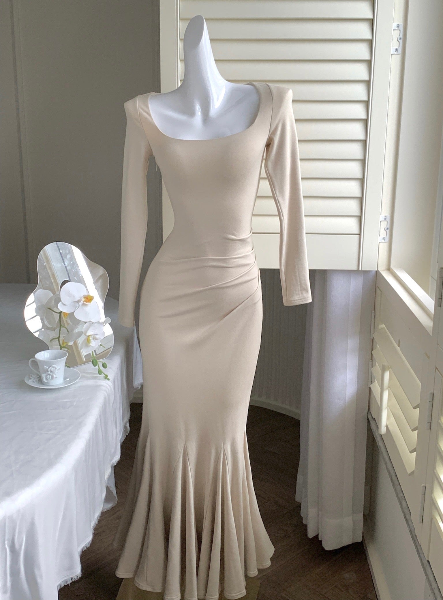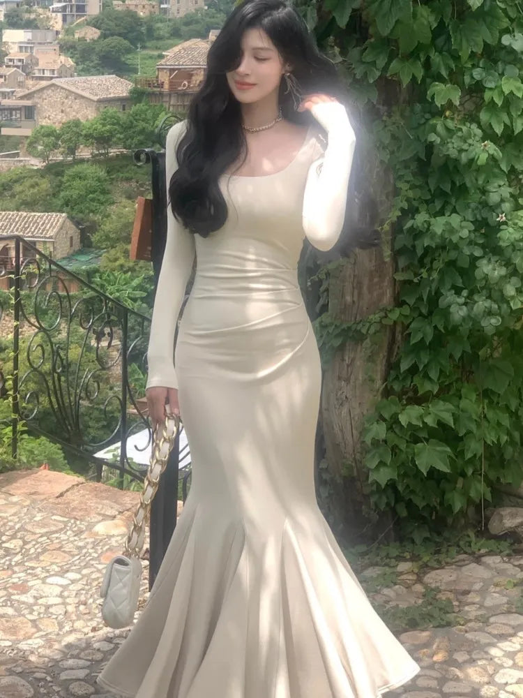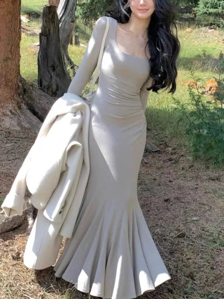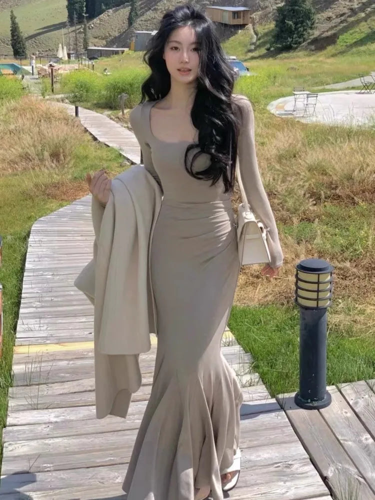 DAIIIBABYYY - Elegant Long Sleeve Knitted Mermaid Dresses Women Sexy Fashion Slim Solid Evening Party Prom Casual Vestido Mujer New Autumn
