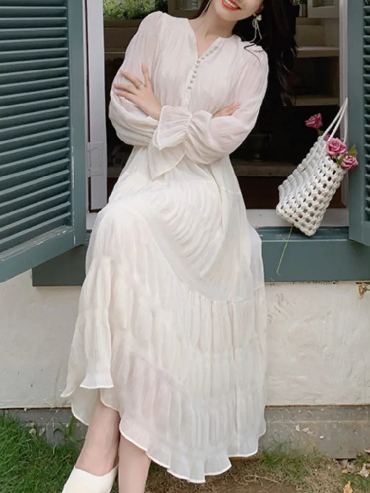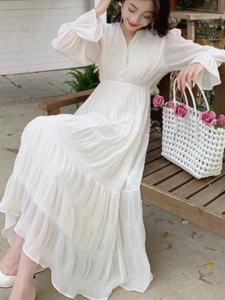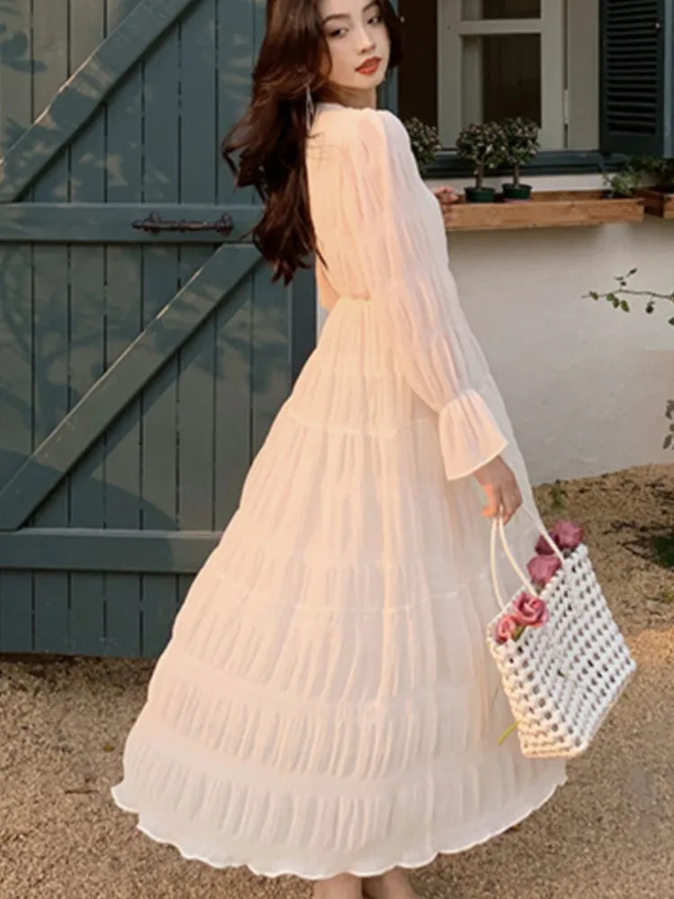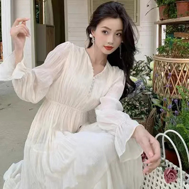 DAIIIBABYYY - Elegant Princess Evening Dress for Women High Waist A-line V-Neck Autumn French Casual Prom Robe One Piece Vestidos Mujer New