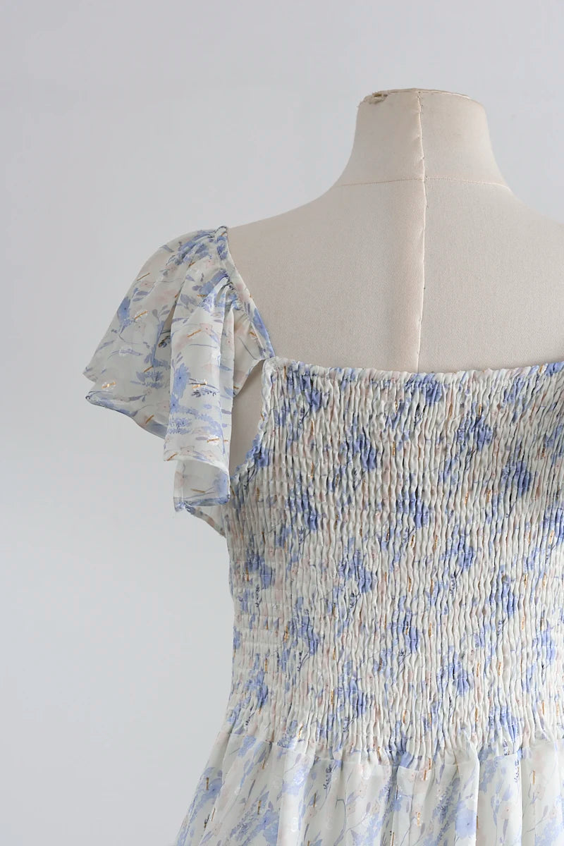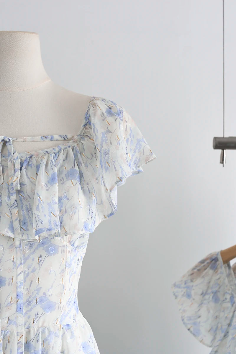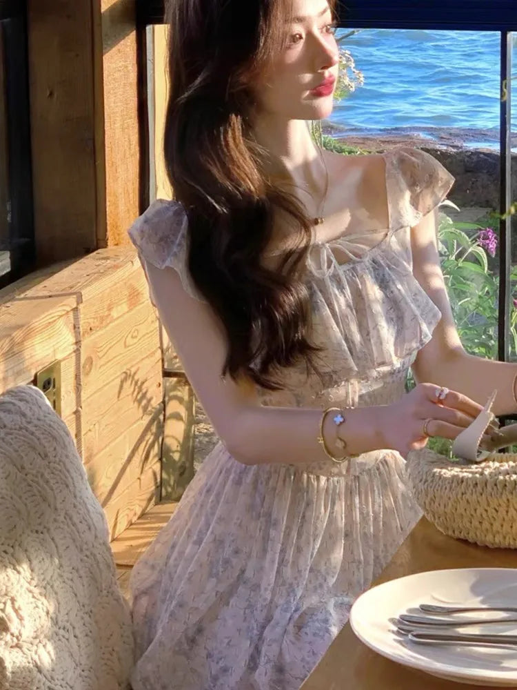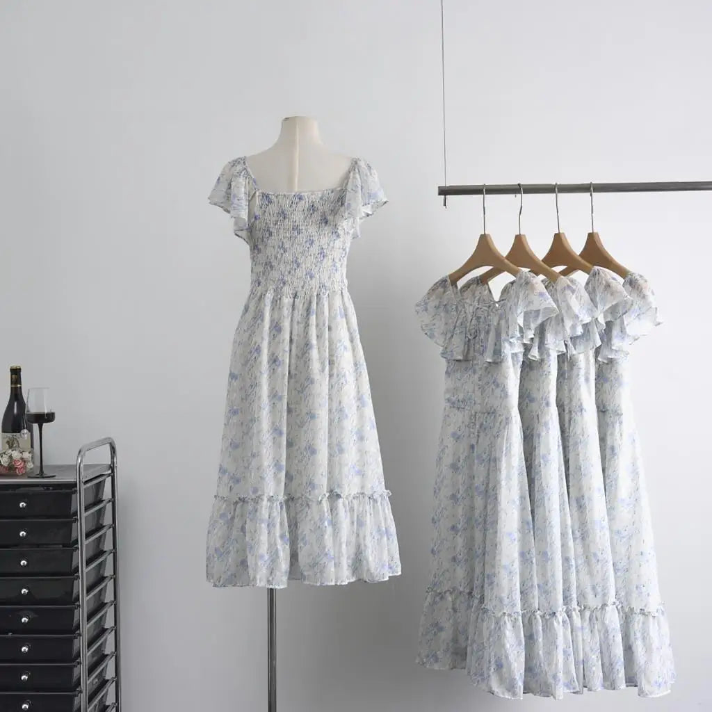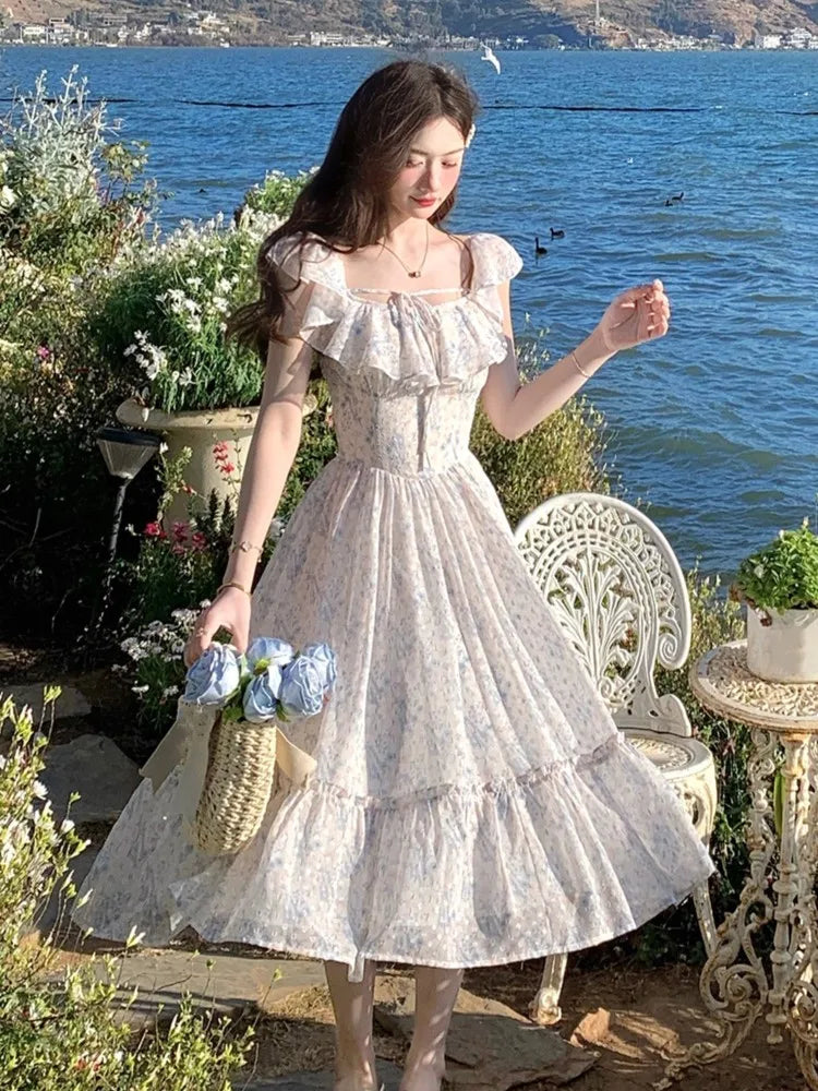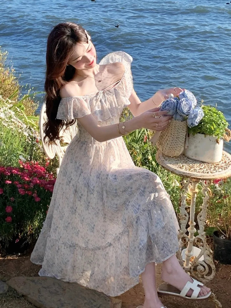 DAIIIBABYYY - Elegant Princess Womens Dresses Floral Print Off Shoulder Slash Neck Fairy Birthday Party Midi Dress Beach A-Line Vestidos New