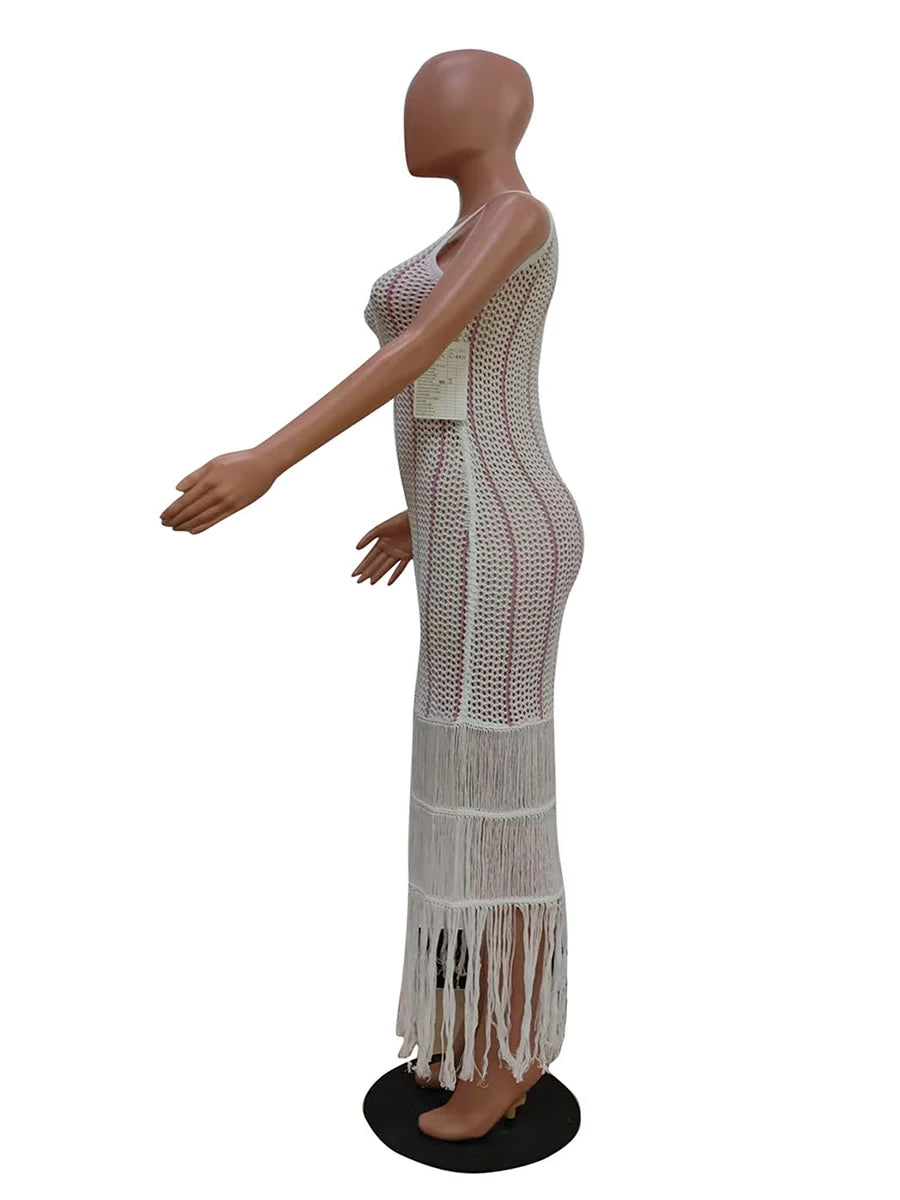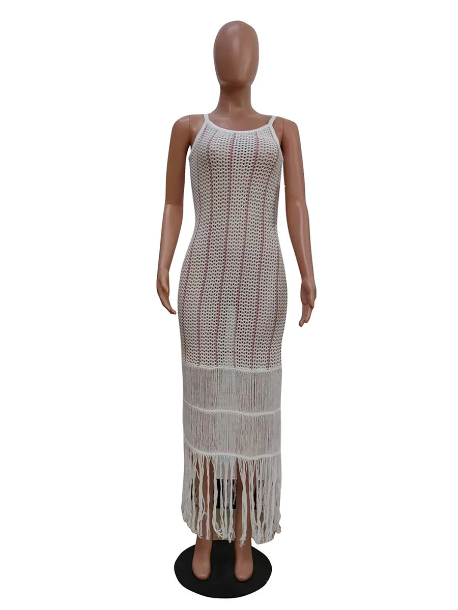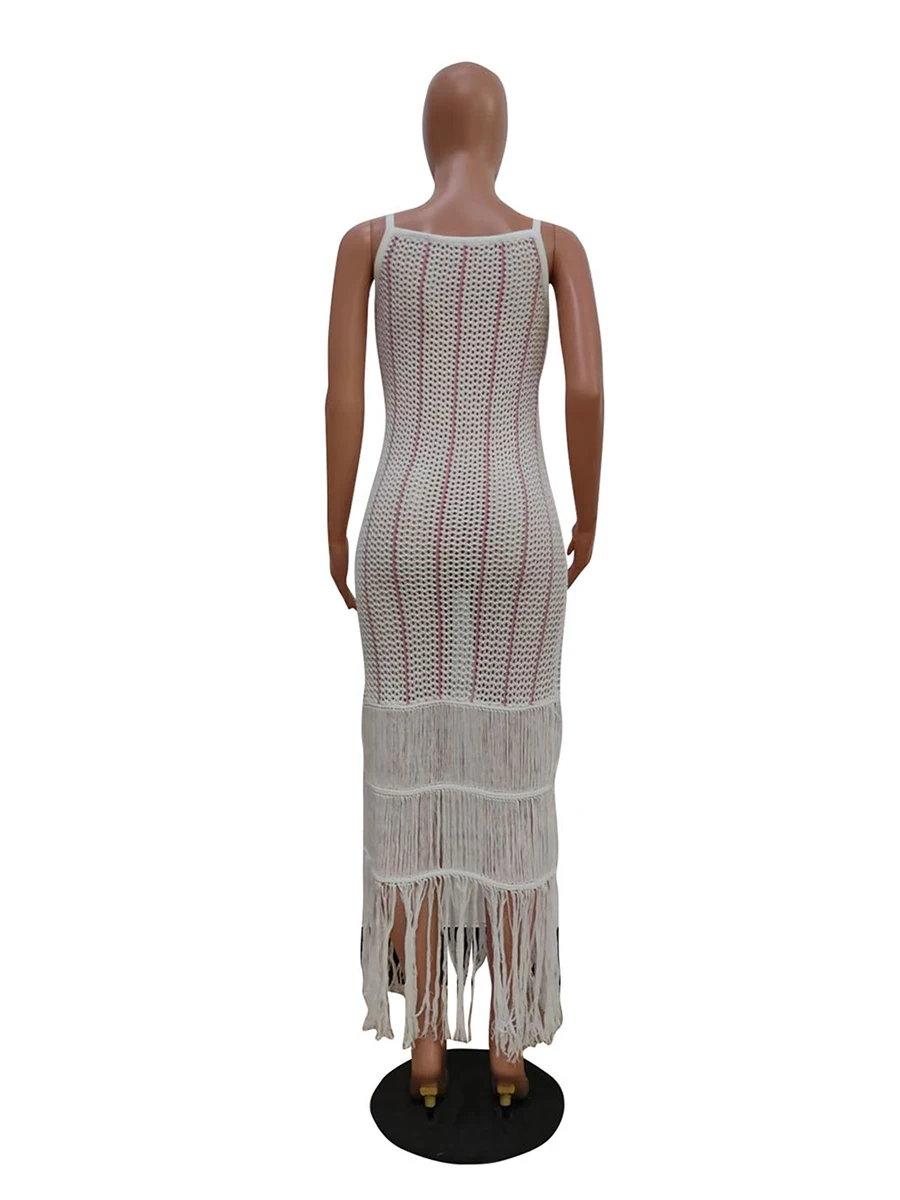 DAIIIBABYYY - Elegant Slimming Spliced Tassles Dresses for Women Round Neck Sleeveless High Waist Temperament Dress Female Fashion New