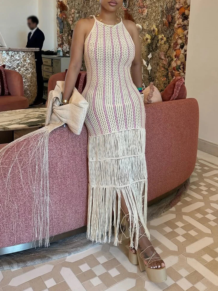 DAIIIBABYYY  -  Elegant Slimming Spliced Tassles Dresses for Women Round Neck Sleeveless High Waist Temperament Dress Female Fashion New