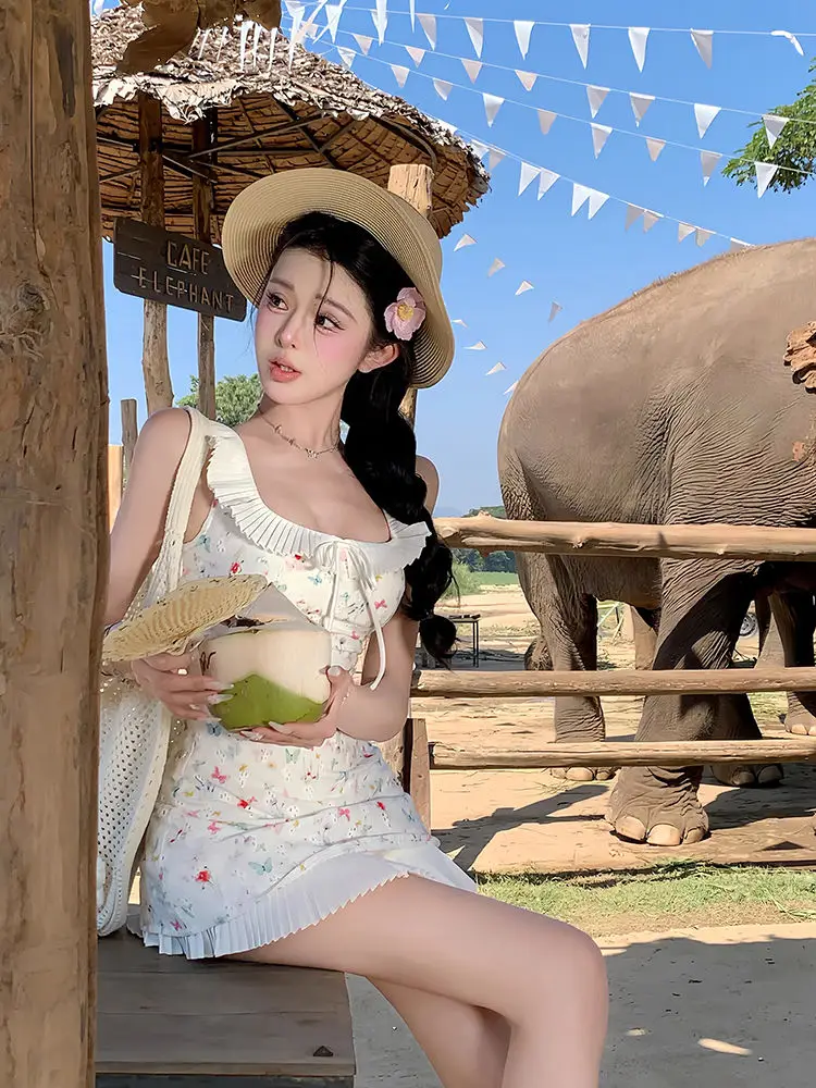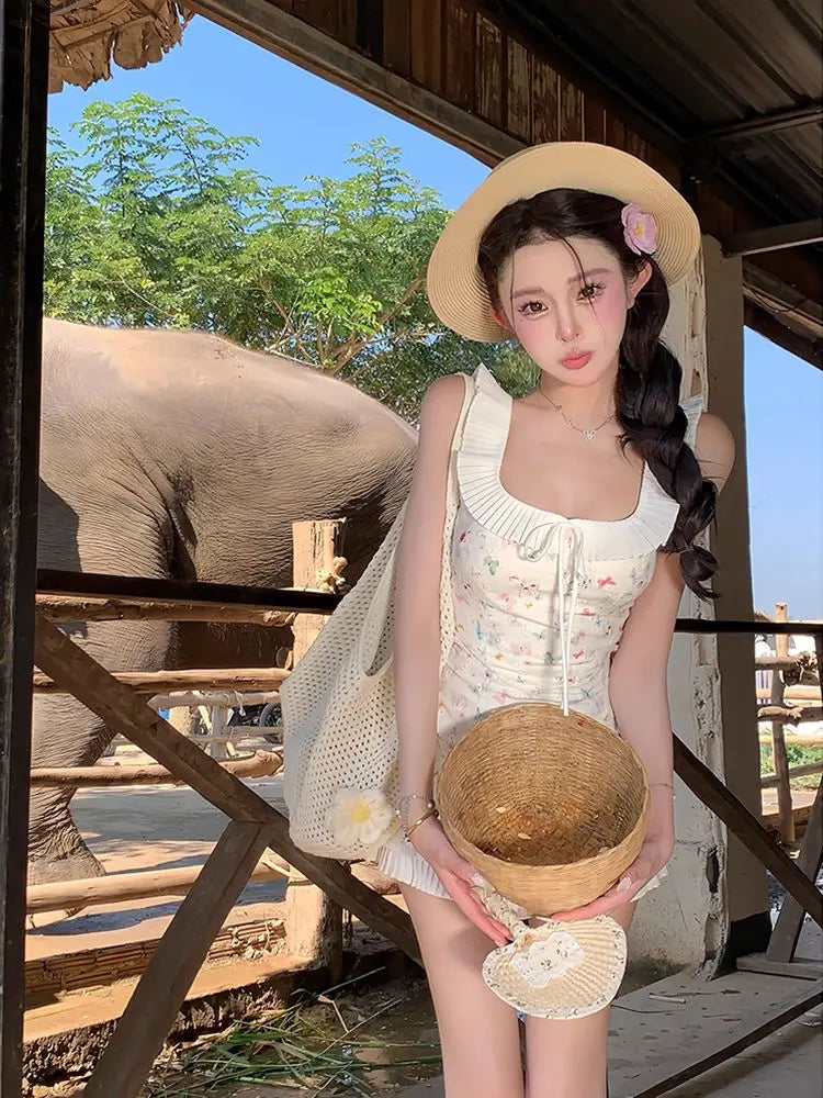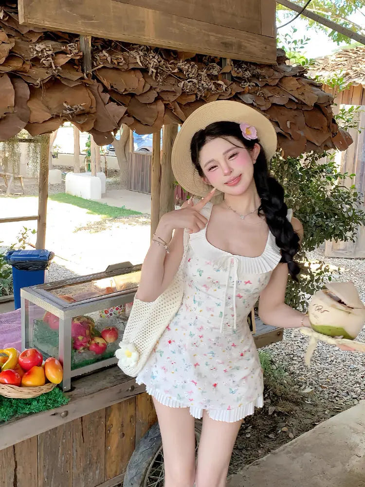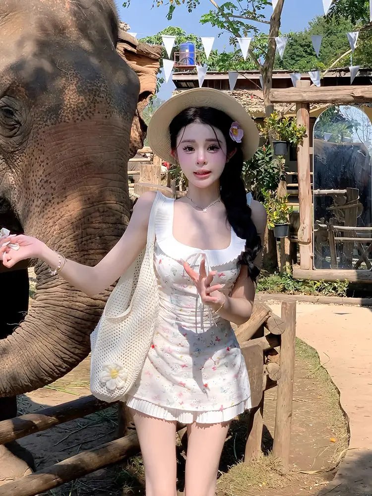 DAIIIBABYYY - Fashion Women Dress Sweet Gentle Butterfly Floral Waist Pinching Women Summer New Slim Fit Square Neck Short Vestidos