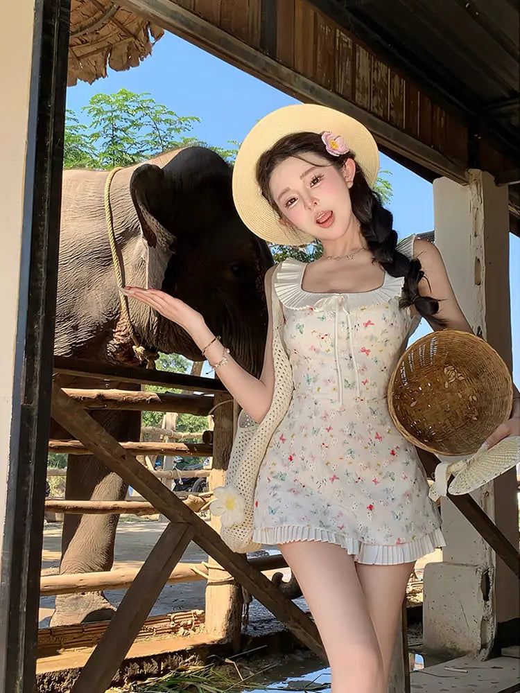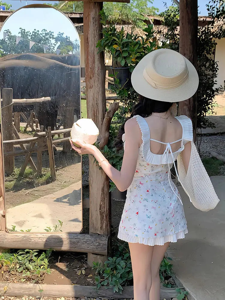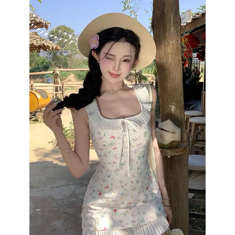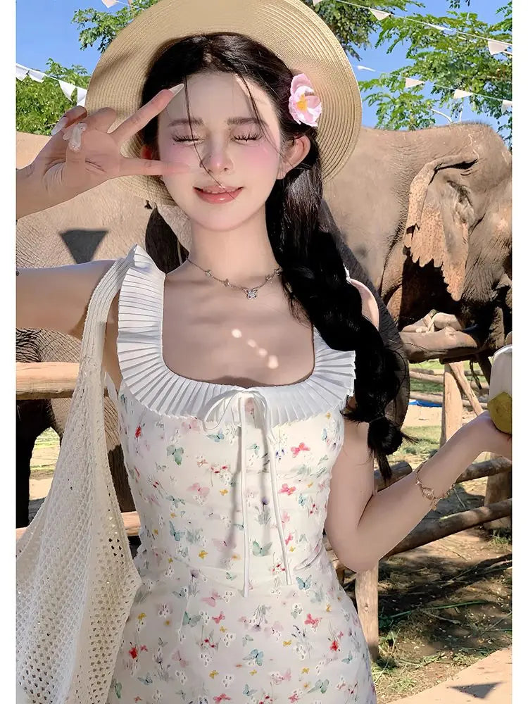 DAIIIBABYYY  -  Fashion Women Dress Sweet Gentle Butterfly Floral Waist Pinching Women Summer New Slim Fit Square Neck Short Vestidos