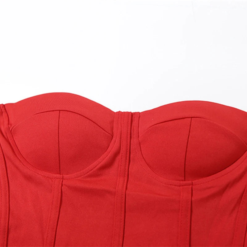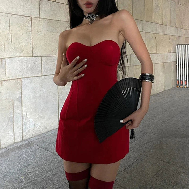 Daiiibabyyy Fashion Women's Red Mini Dresses Strapless Backless Off-shoulder Body-shaping High Waist Sexy Charming Package Hip Vestidos