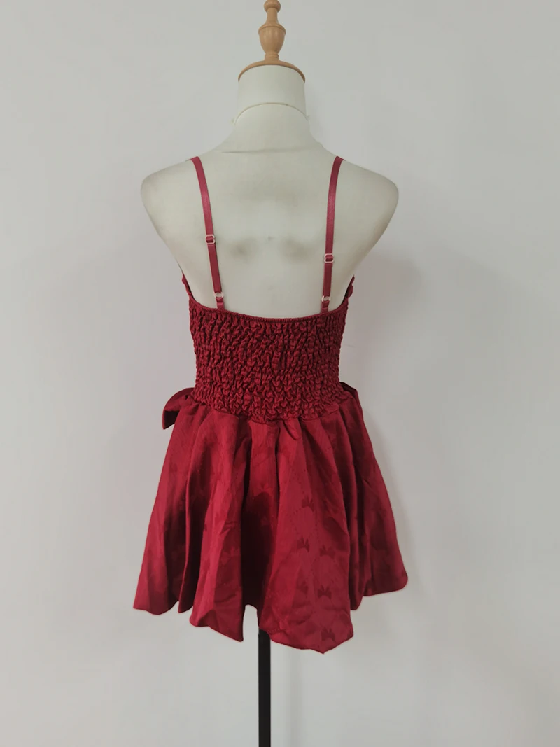 DAIIIBABYYY - French Spicy Girl Sexy Red Sleeveless Short Dresses for Women New Retro Ruffle Edge Bow Sweet Waist Slim A-line Sling Dress