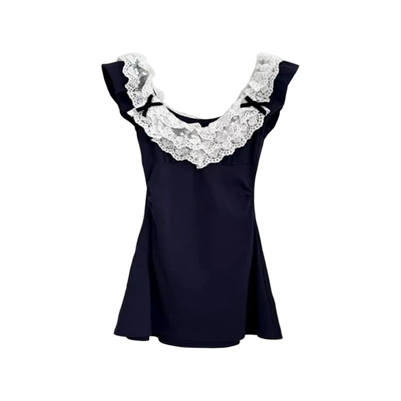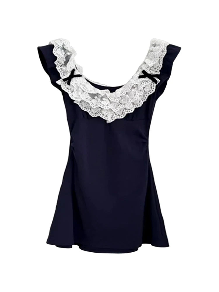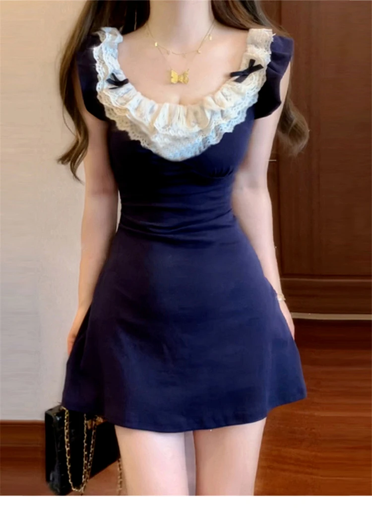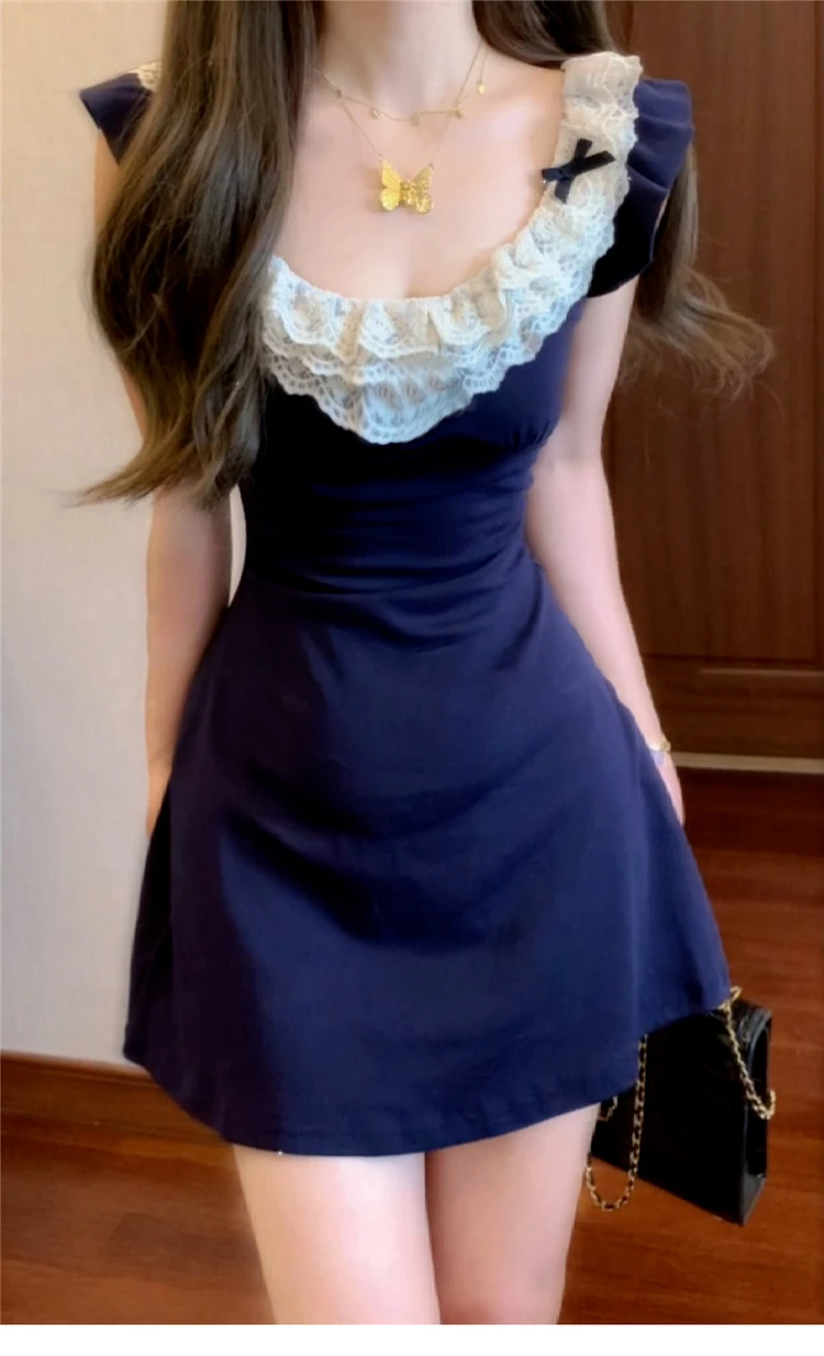 DAIIIBABYYY - French Style Hot Girl Flying Sleeve Dress Women's Summer Pure Sexy Lace Slim Fit A-line Short Dress Fashion Female Clothes