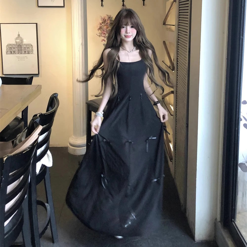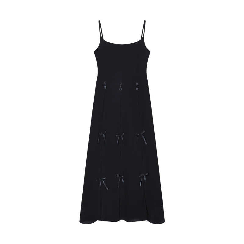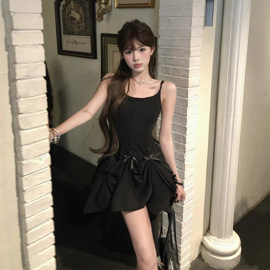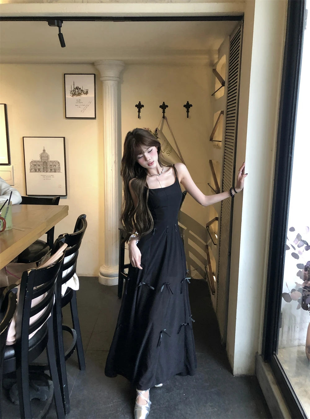 DAIIIBABYYY - French Sweet Girl Style Bow Sling Dress For Women Summer Design Sense One And More Wearing A-line Blue Short Strap Dresses