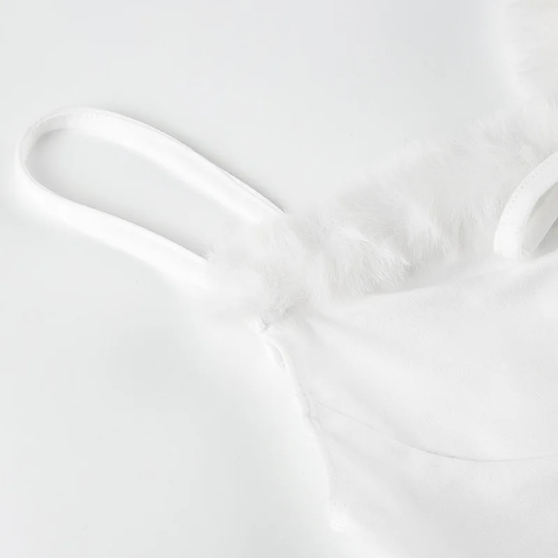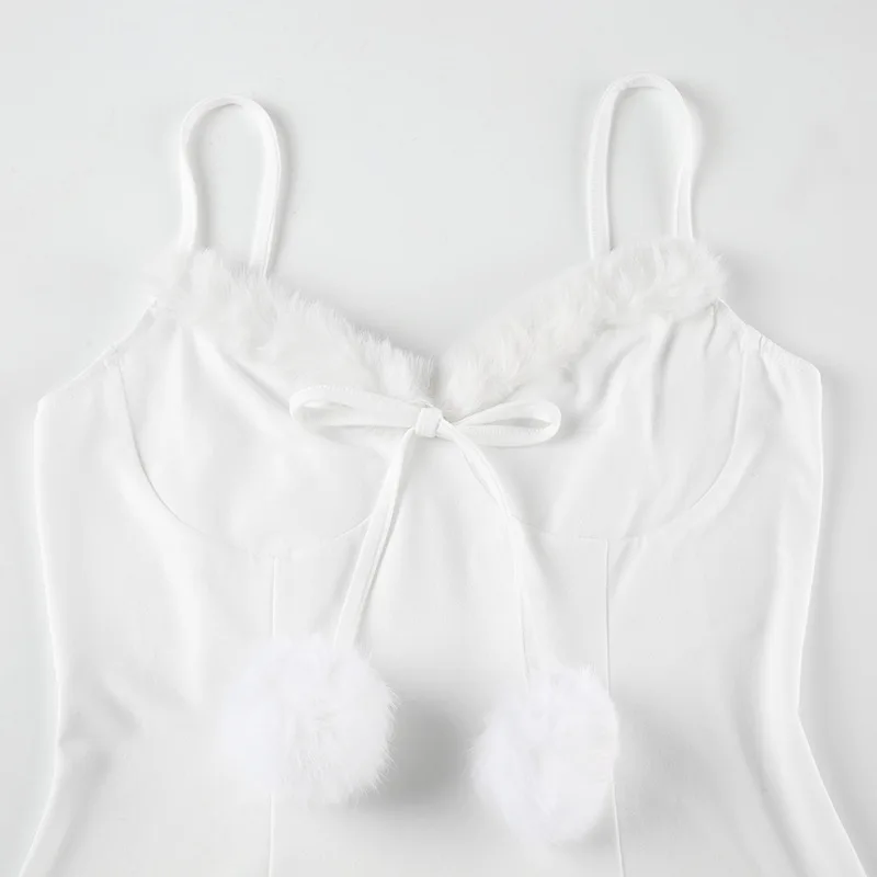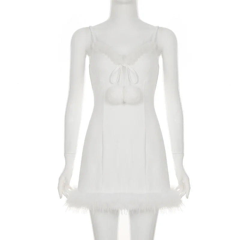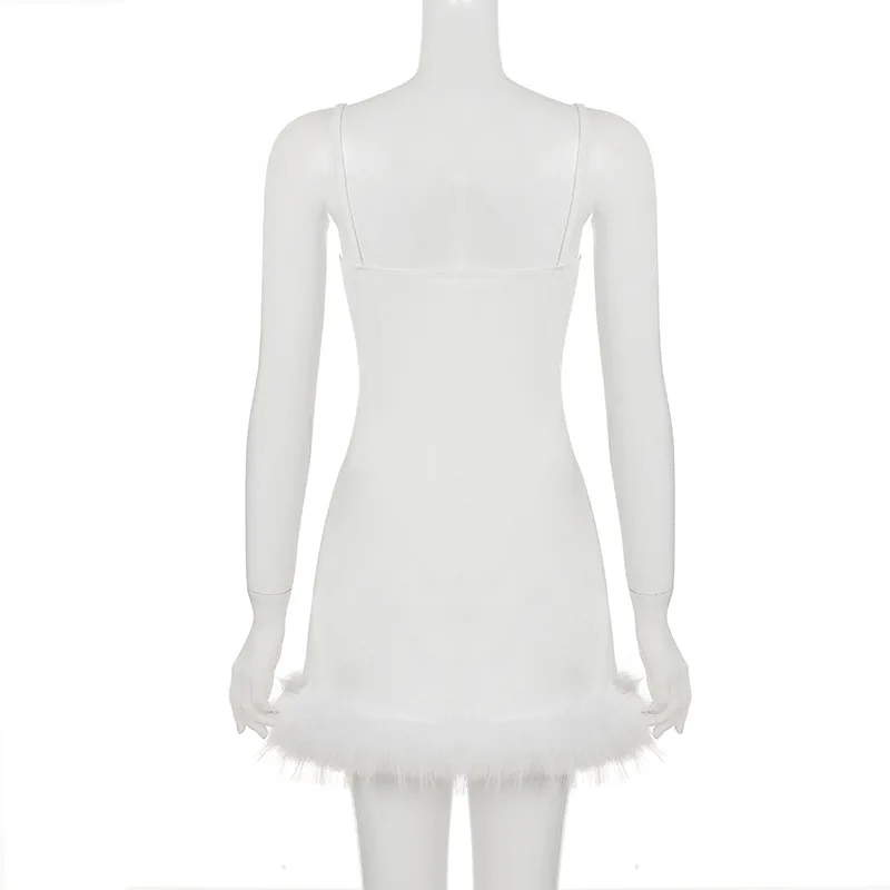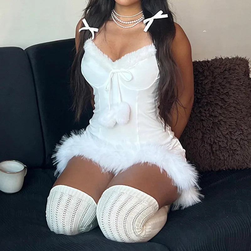 DAIIIBABYYY - Fur Christmas White Dress Lady Party Mini Evening Elegant Dresses 2024 Women Winter Clothes Luxury Sexy Bodycon Furry Dresses