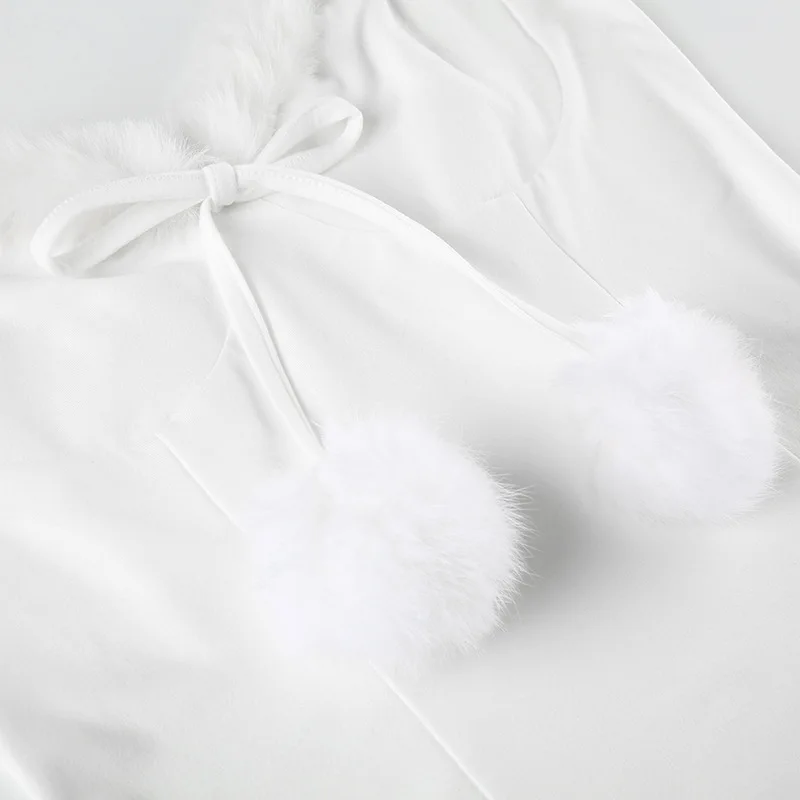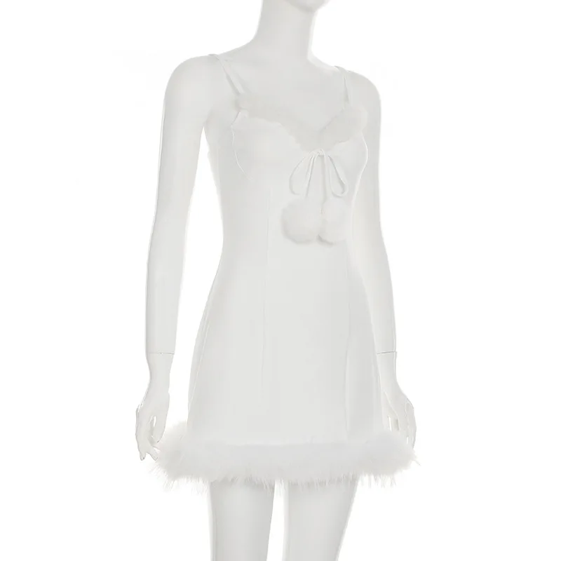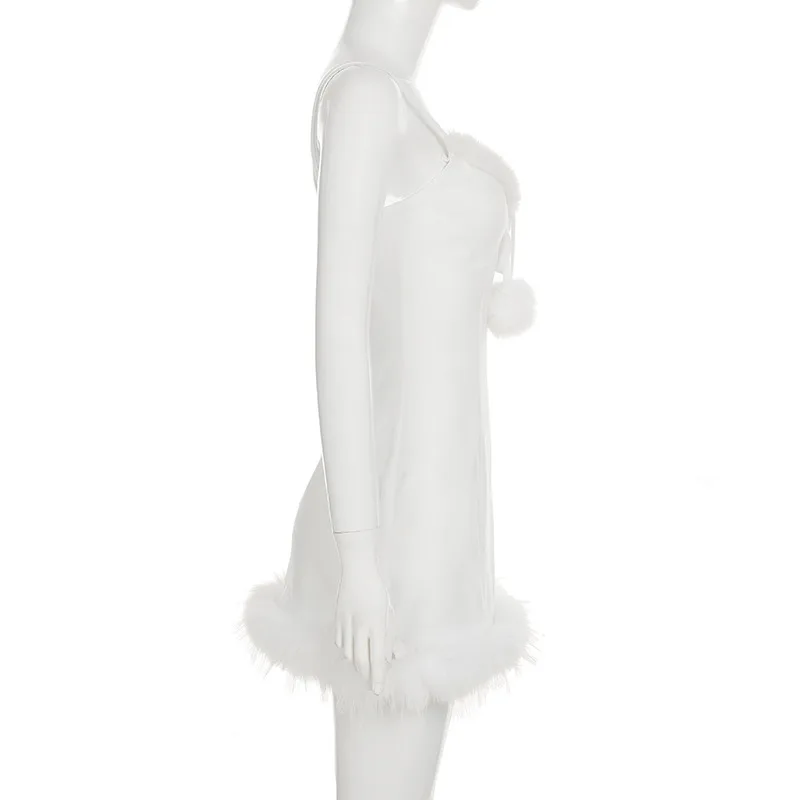 DAIIIBABYYY  -   Fur Christmas White Dress Lady Party Mini Evening Elegant Dresses 2024 Women Winter Clothes Luxury Sexy Bodycon Furry Dresses