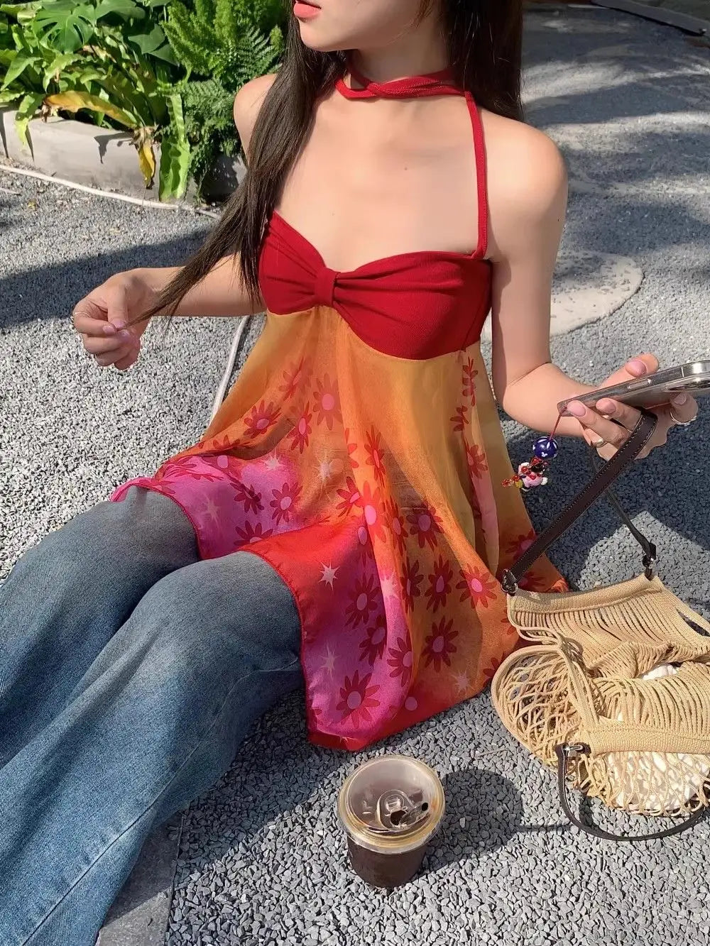 DAIIIBABYYY - Hanging Neck Strap Dress Women's Summer Slimming and Slimming Skincare Sexy Temperament Top