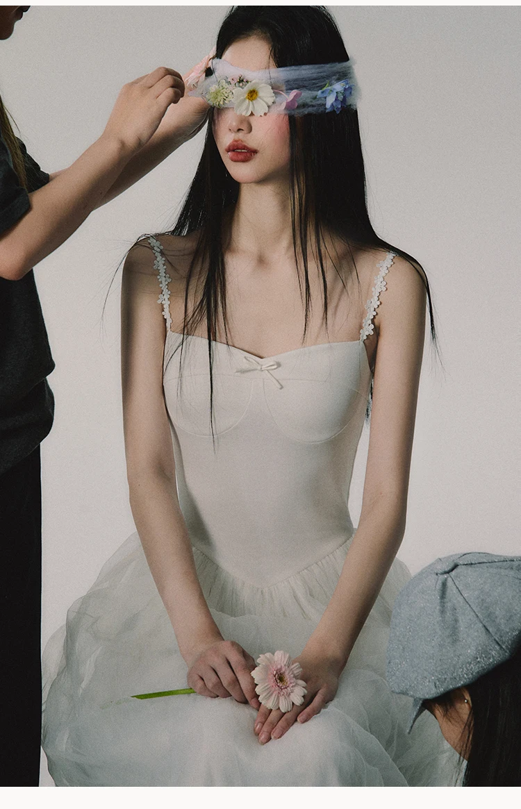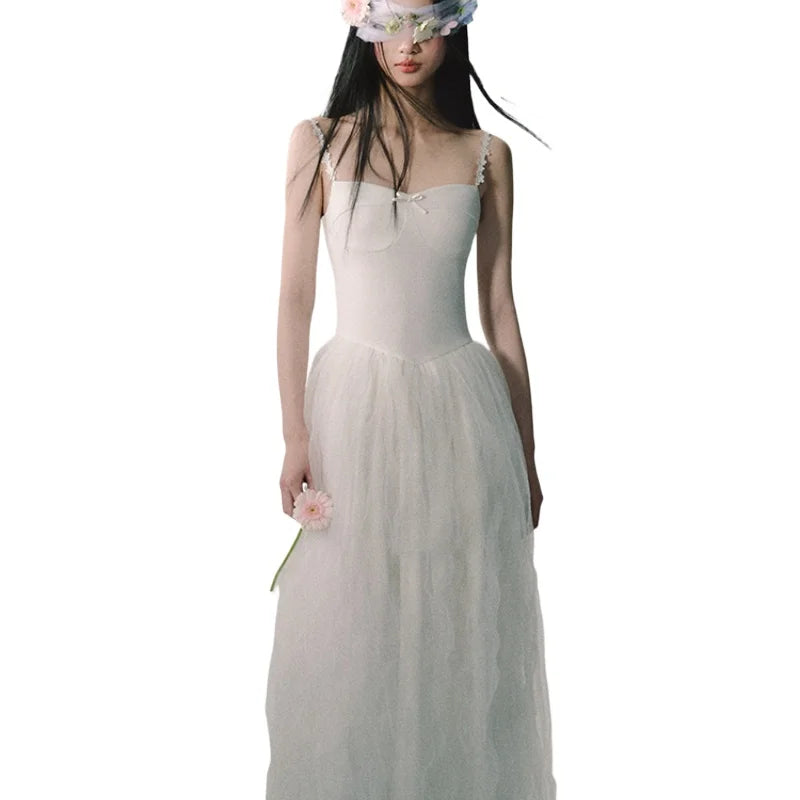 DAIIIBABYYY - High Quality "Dream Flower" White Camisole Dress Mesh Long Dress Women's Waist Up Slim Embroidered Dress Elegantes Vestidos Y2k